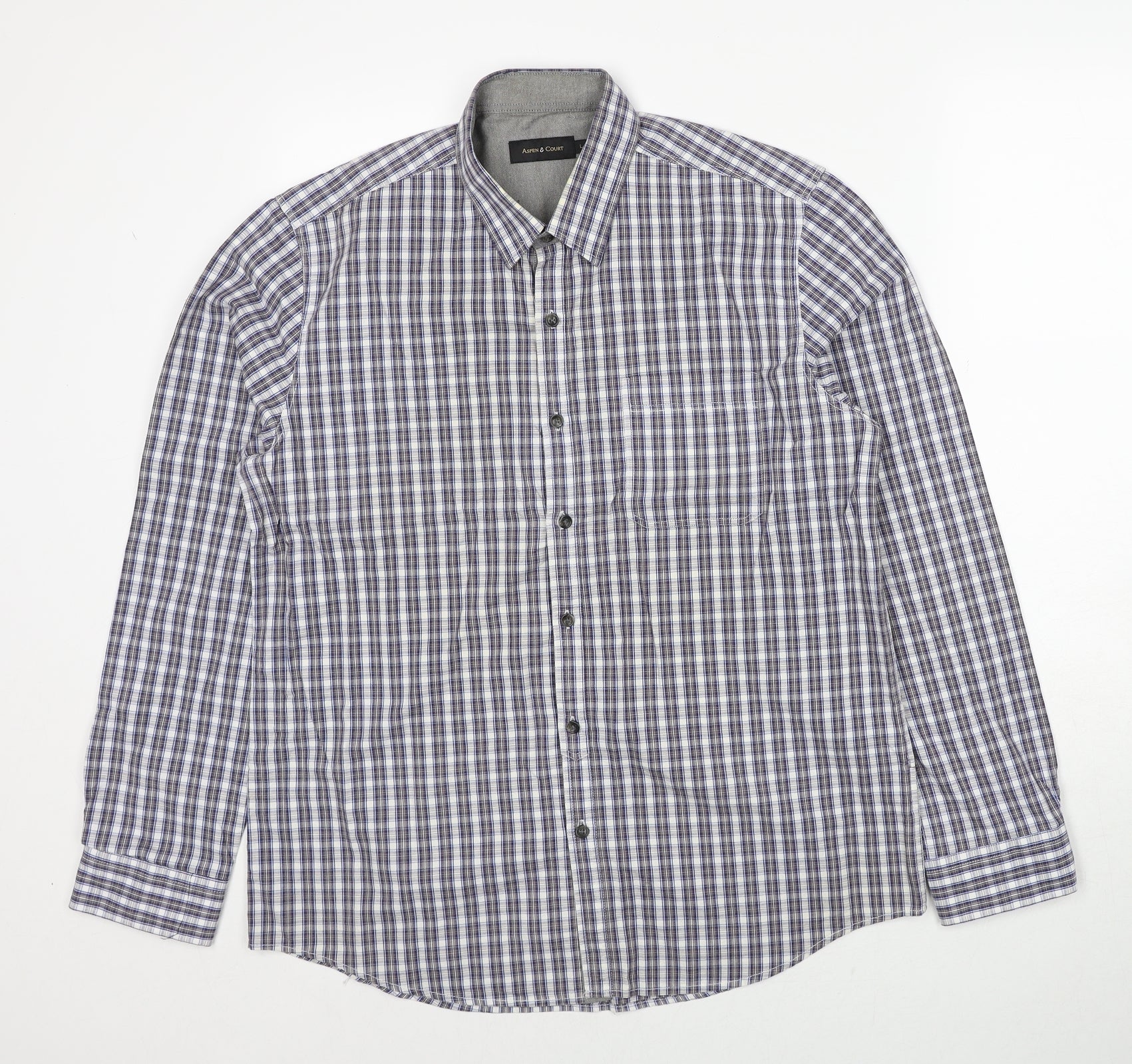 Aspen & Court Mens Blue Plaid Cotton Button-Up Size L Collared Button