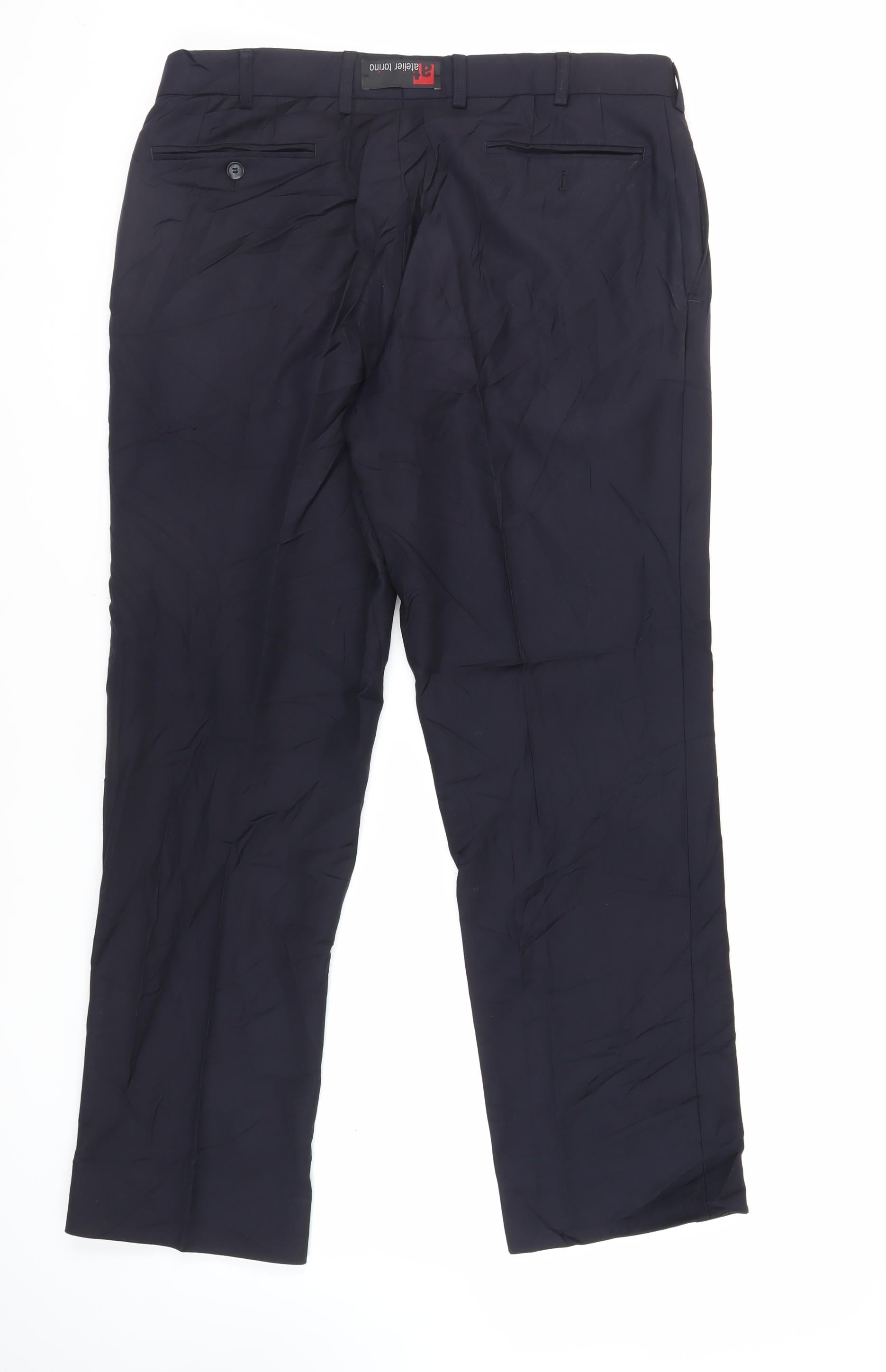 Atelier Torino Mens Blue Polyester Dress Pants Trousers Size 36 in L30 in Regular Zip