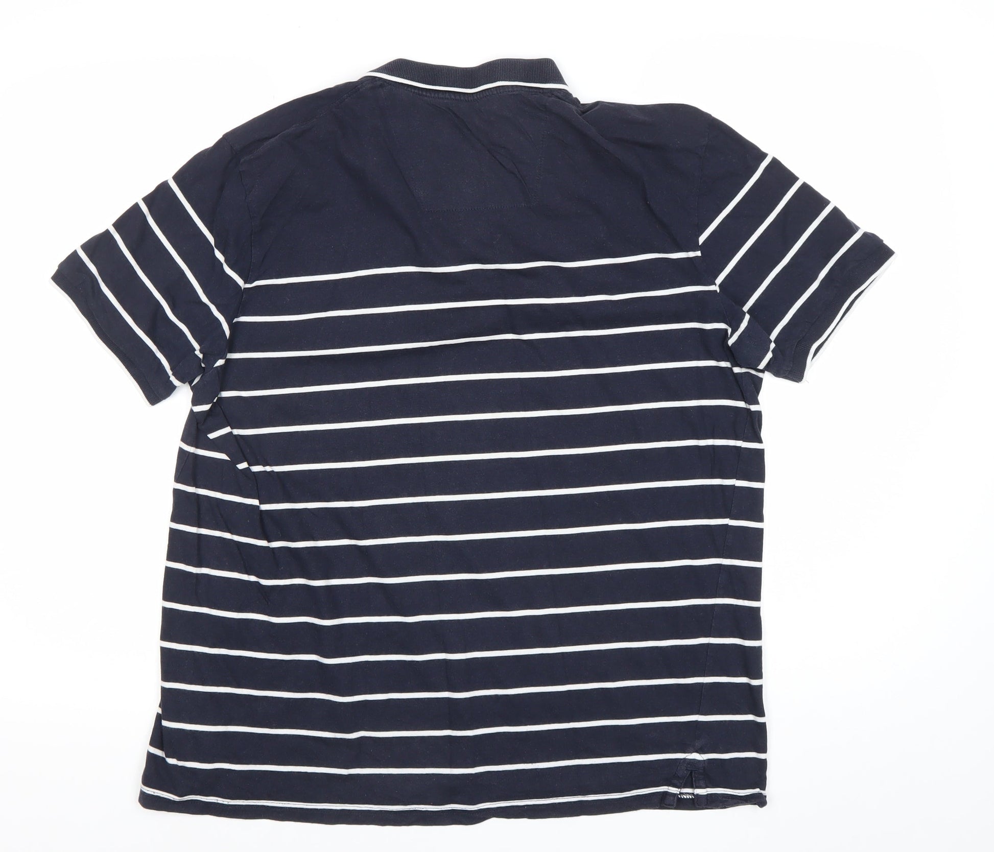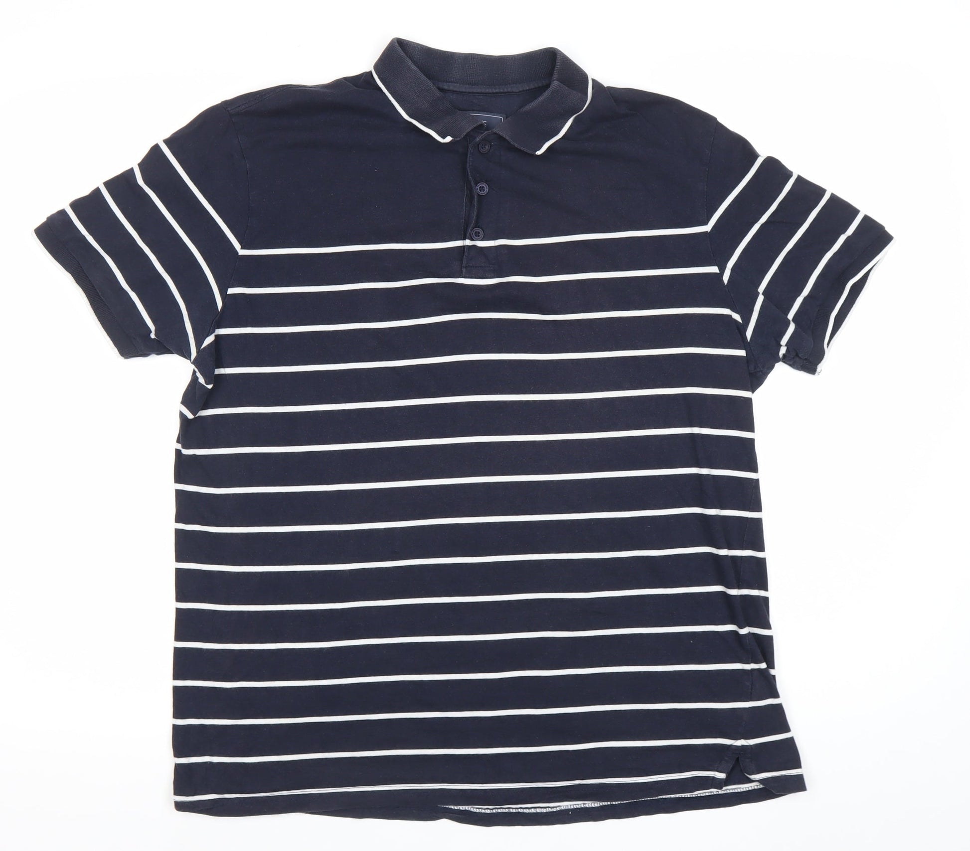 Atlantic Bay Men’s Blue Striped Polo Shirt M Cotton Casual