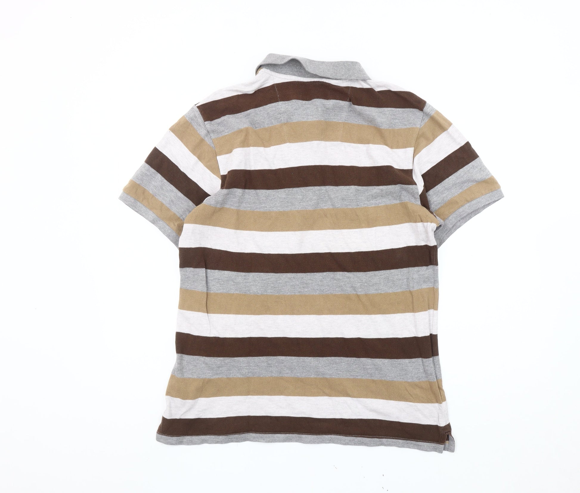 Atlantic Bay Men’s Brown Beige Grey Striped Polo Shirt M