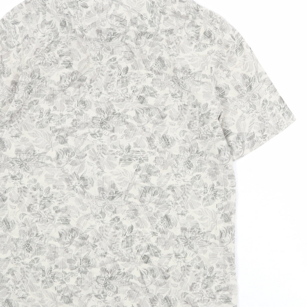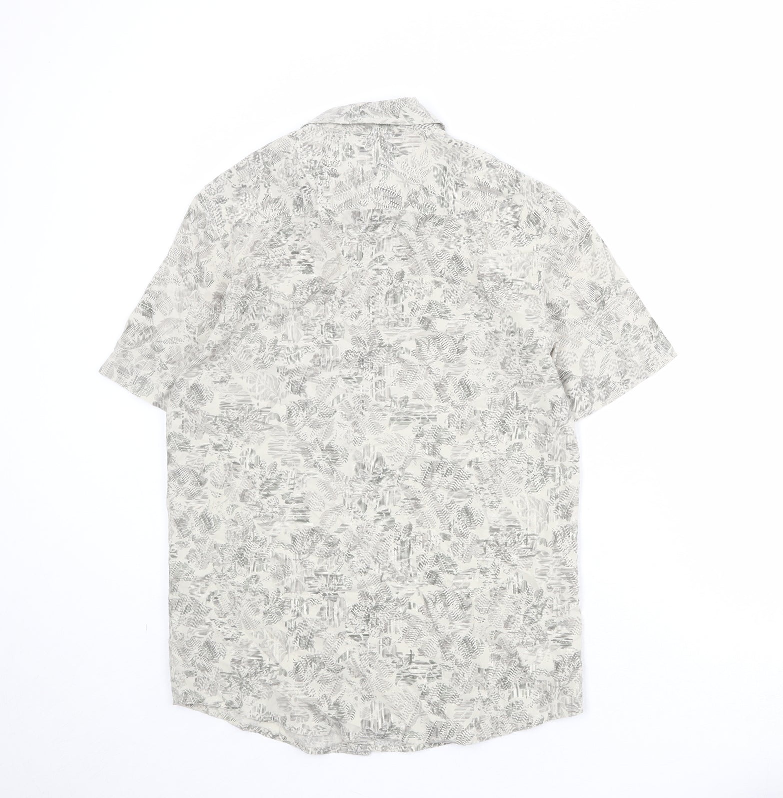 Atlantic Bay Mens Beige Geometric Polyester Button-Up Size S Collared Button