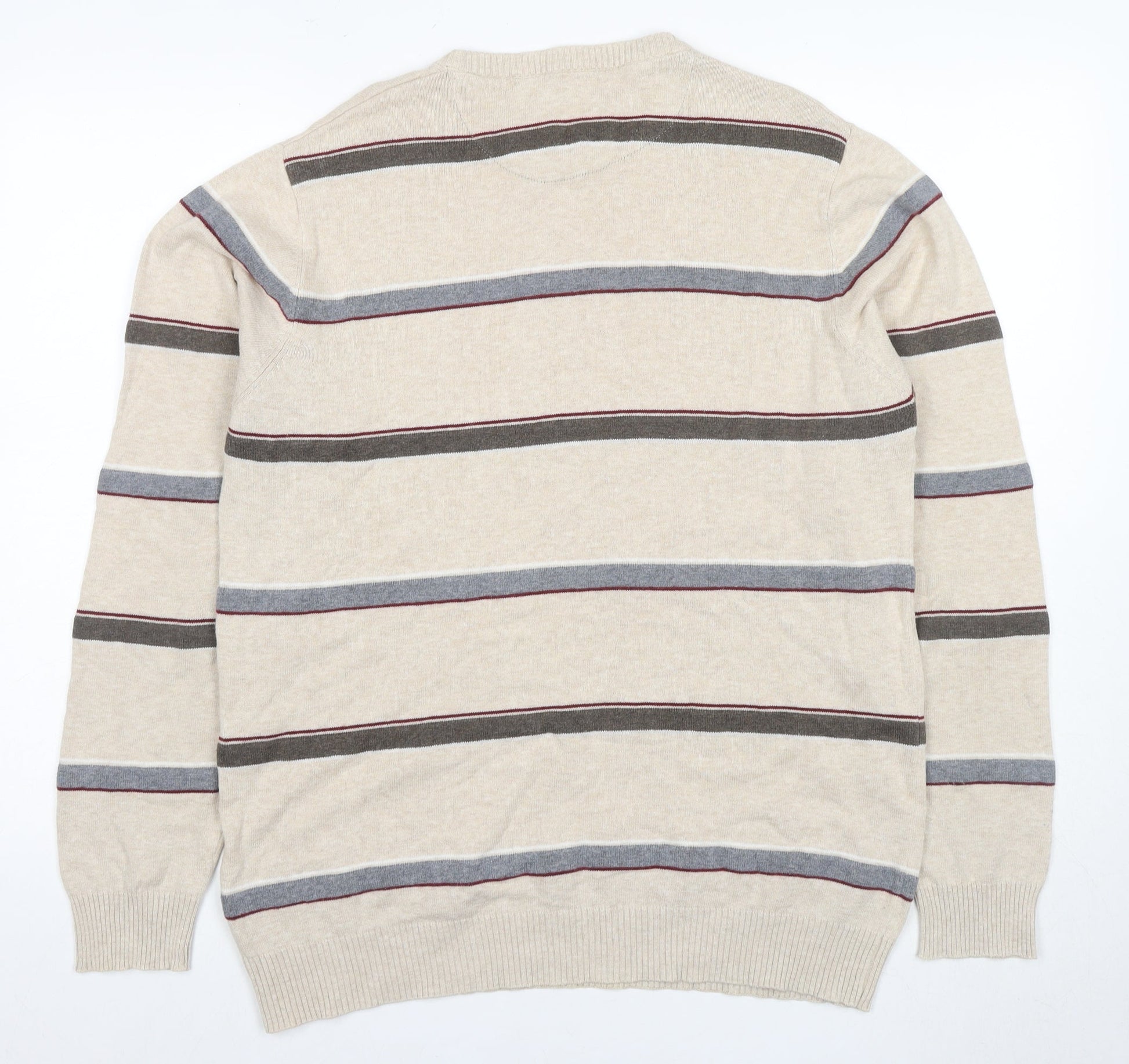 Atlantic Bay Men's Beige Striped Pullover Jumper M