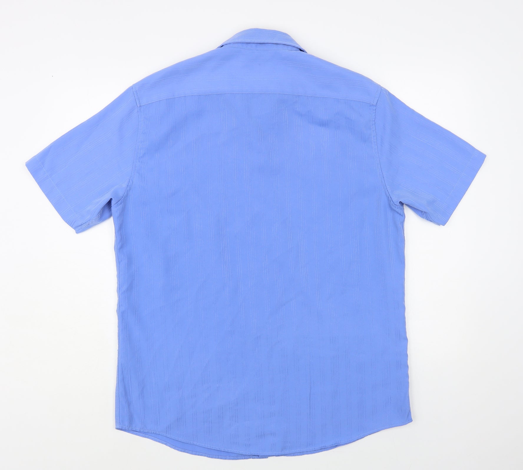 Atlantic Bay Mens Blue Polyester Button-Up Size M Collared Button