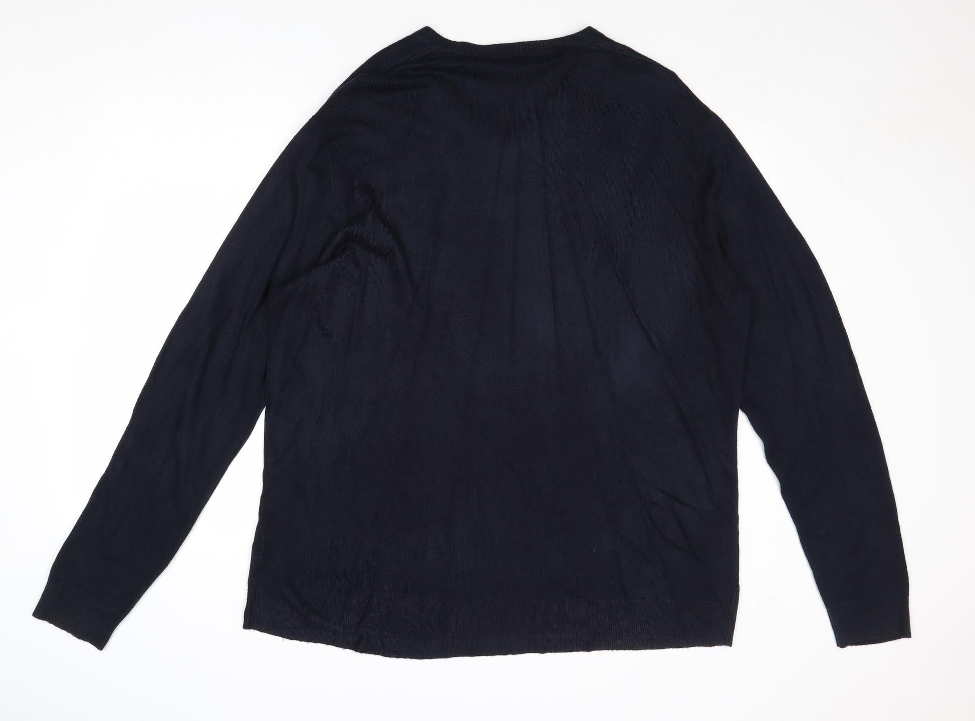 Atlantic Bay Mens Blue V-Neck Acrylic Pullover Jumper Size XL Long Sleeve