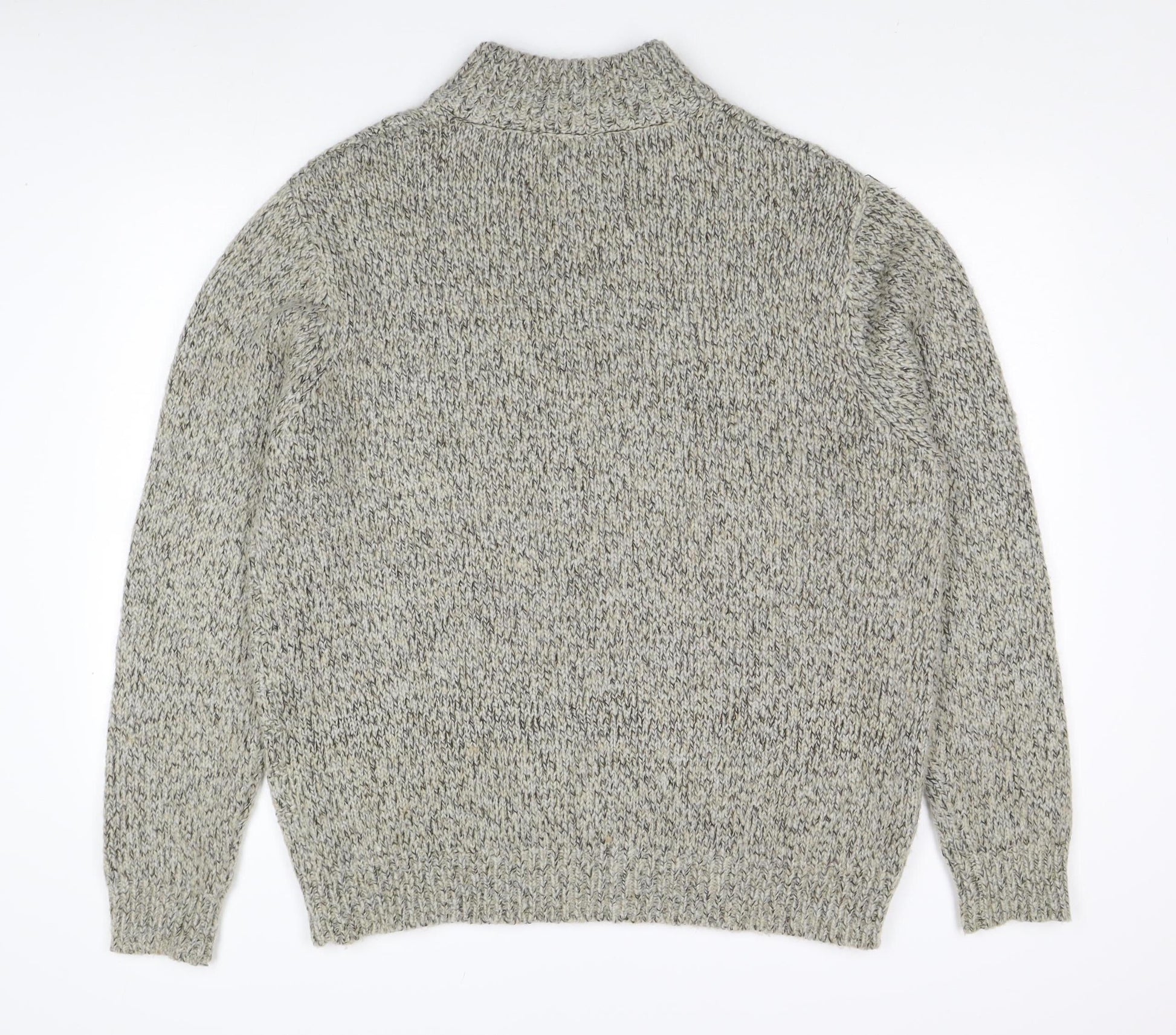Atlantic Bay Men's Grey Cable-Knit Full Zip Jumper L