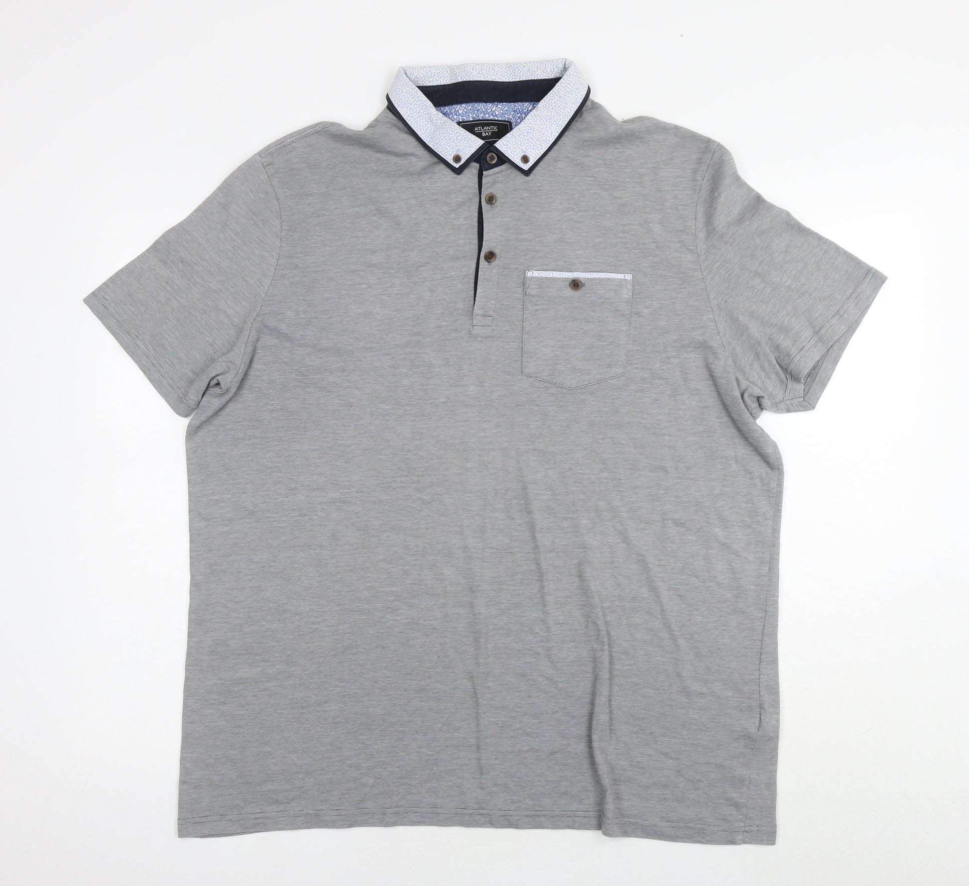 Atlantic Bay Mens Grey Cotton Polo Size XL Collared Pullover