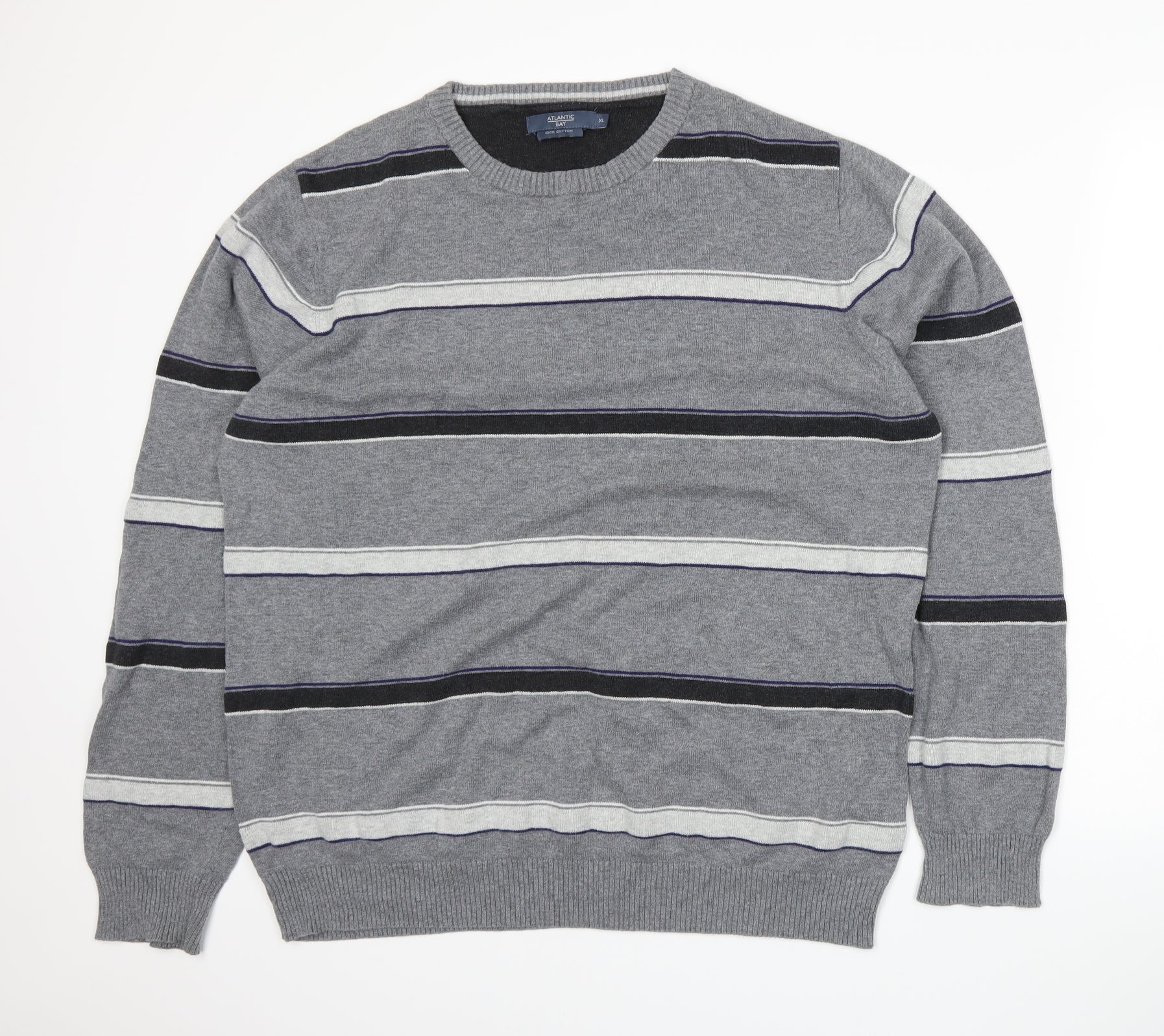 Atlantic Bay Mens Grey Striped Knit Pullover Jumper Size XL