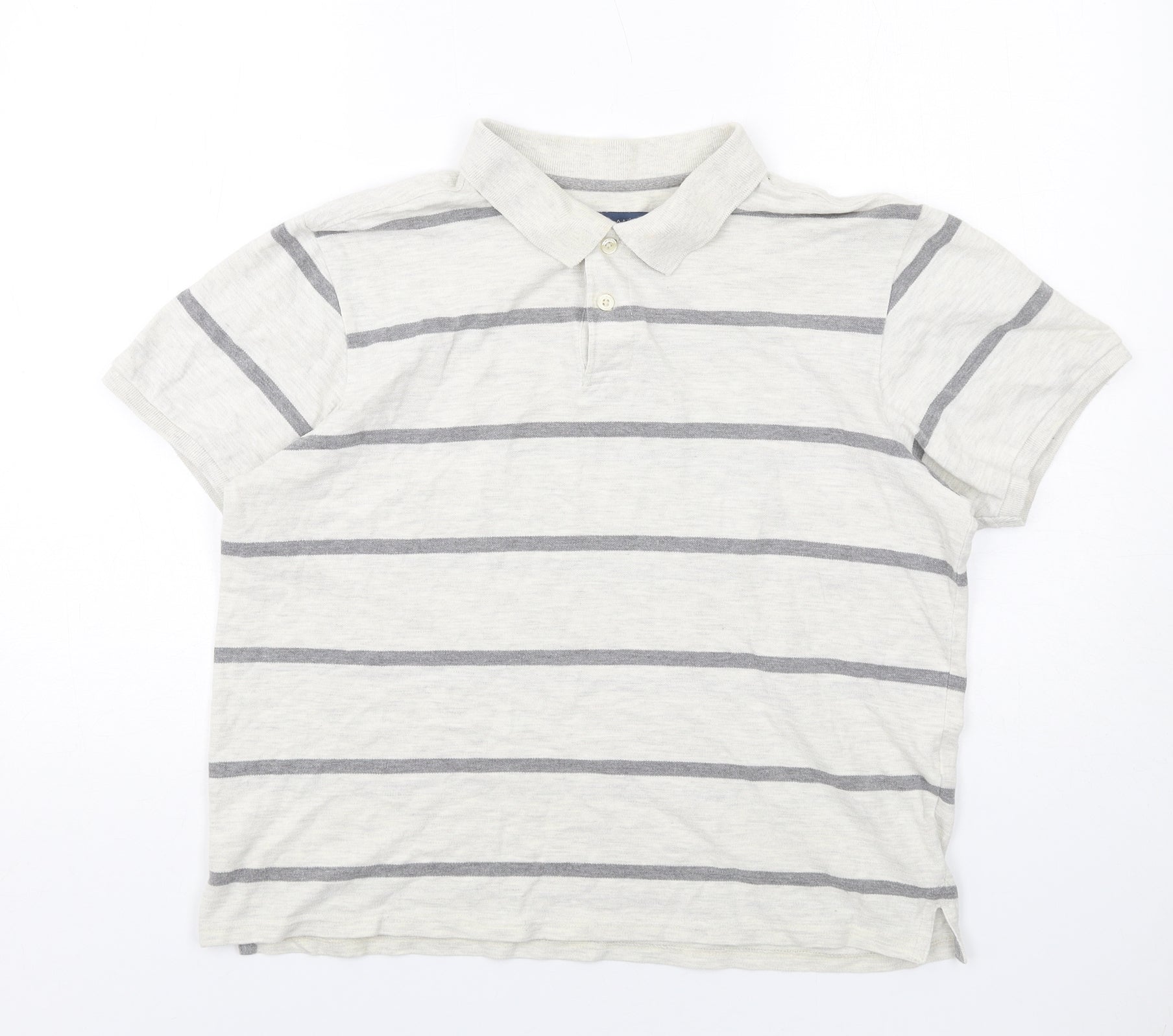 Atlantic Bay Mens Ivory Striped Cotton Polo Size M Collared Button