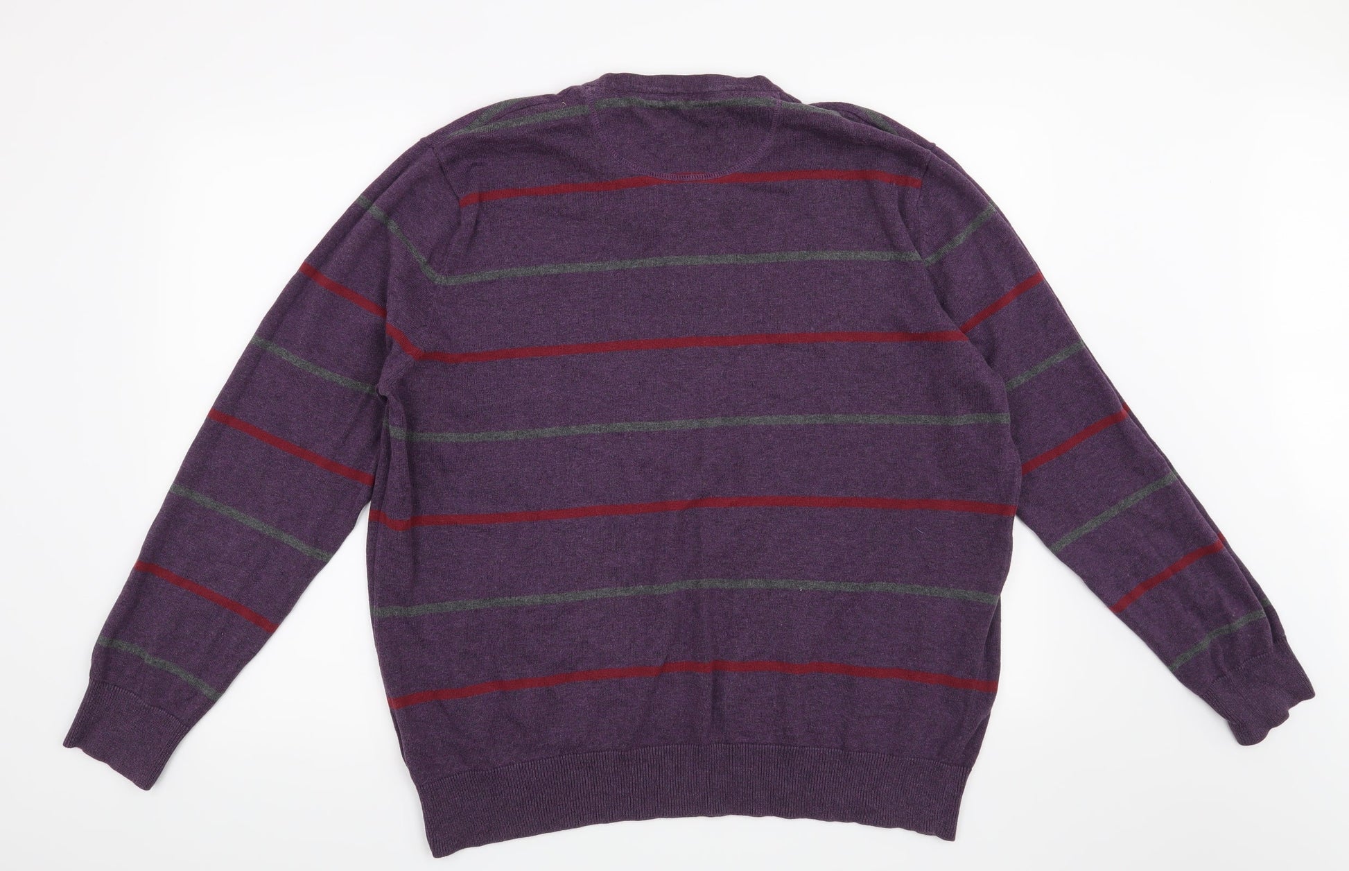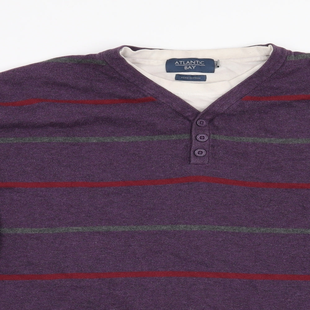 Atlantic Bay Mens Purple Striped Pullover Jumper Size XL