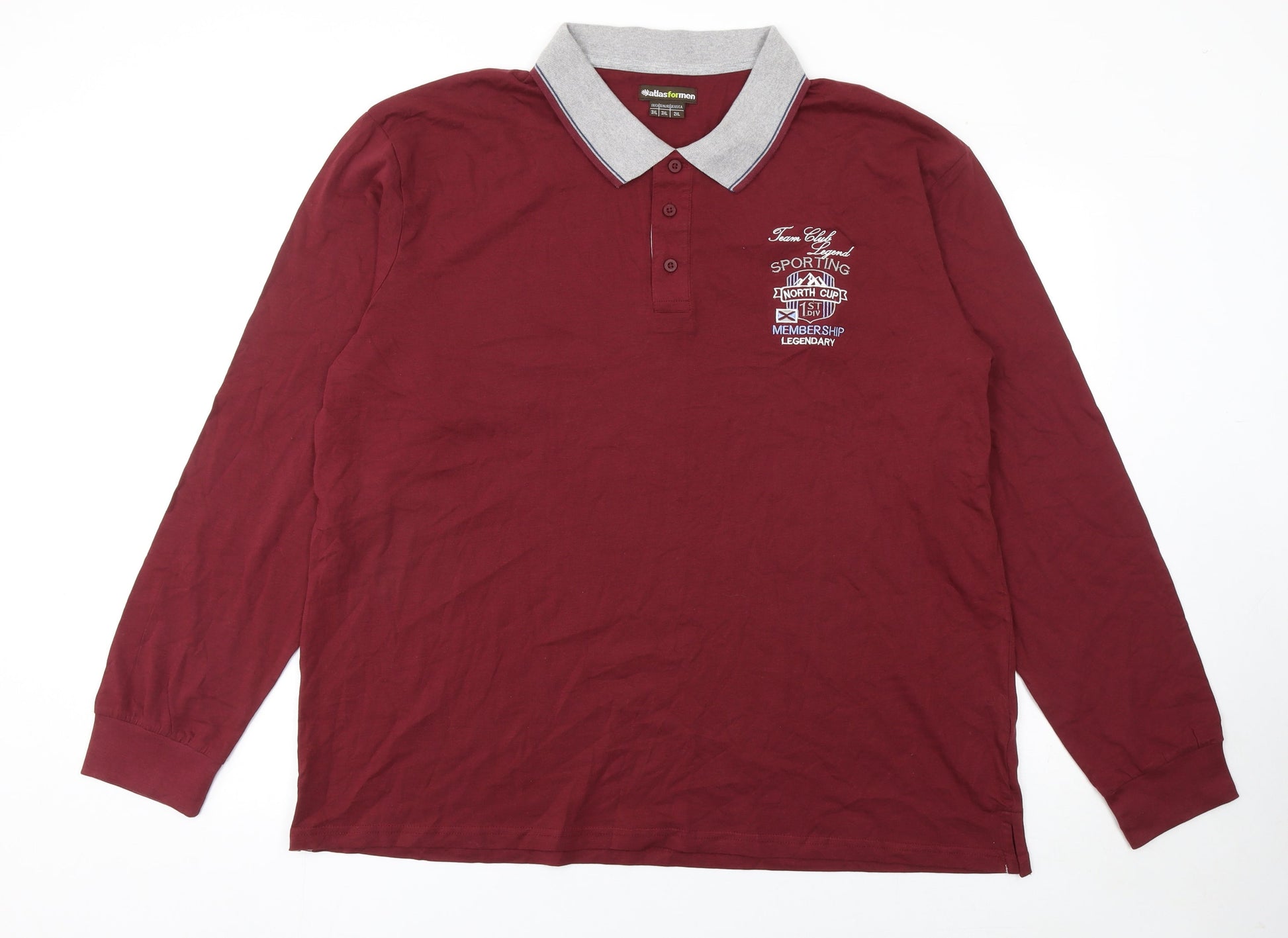 Atlas For Men Burgundy Red Long Sleeve Cotton Polo Shirt Size 3XL