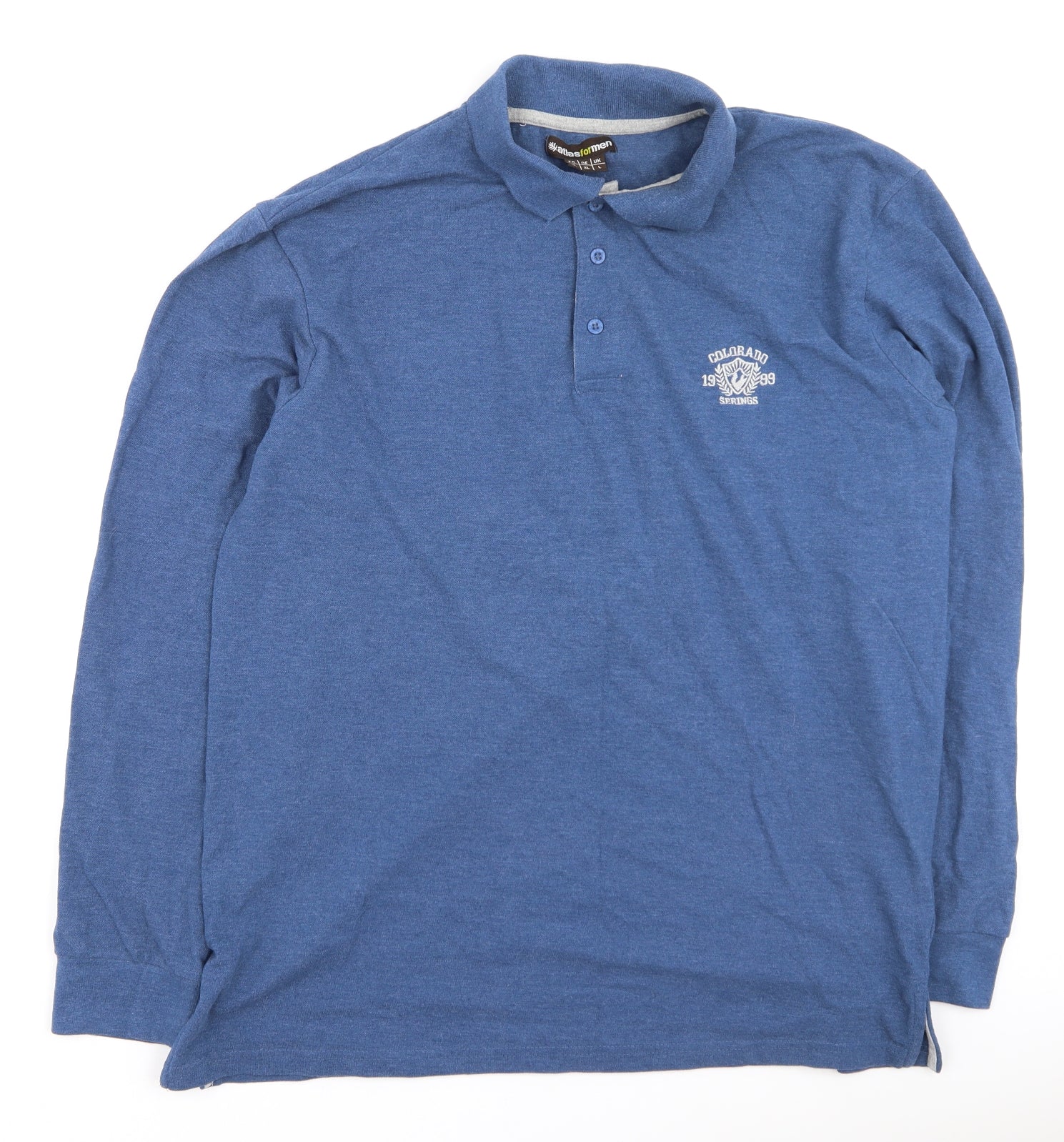 atlasformen Mens Blue Cotton Button-Up Size L Collared