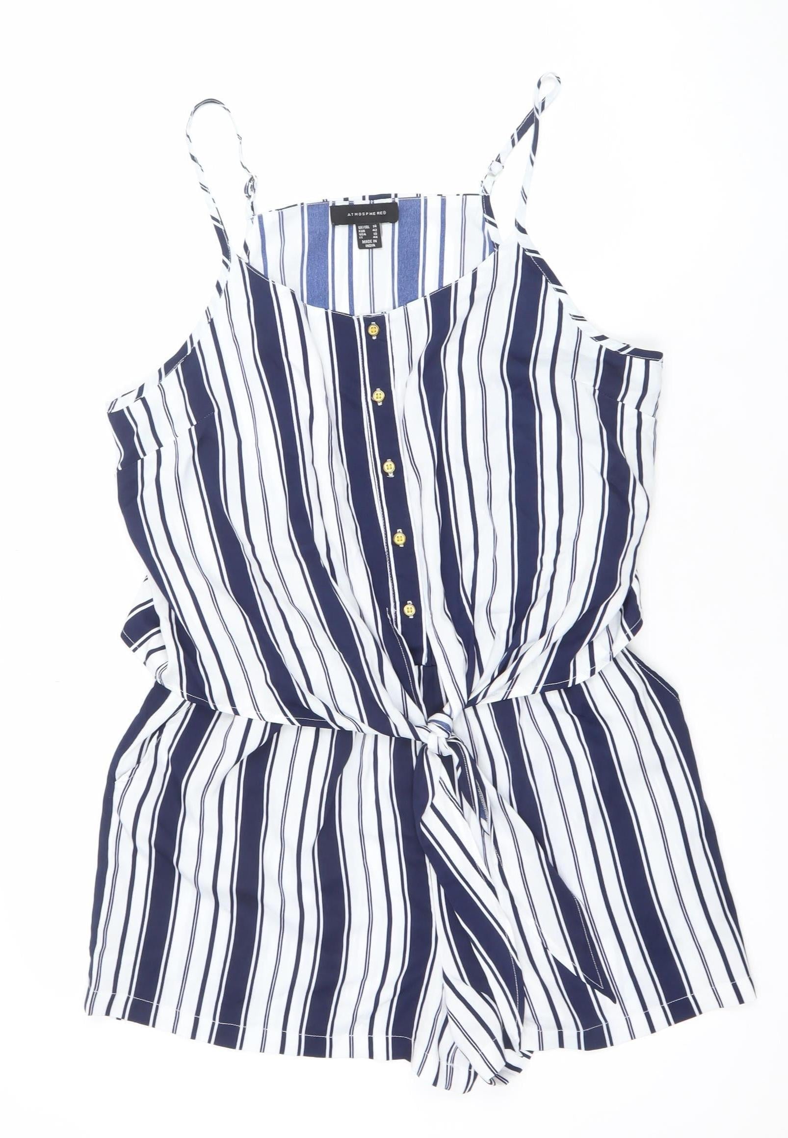 Atmosphere Women Blue White Striped Playsuit Size 14 Sleeveless Summer