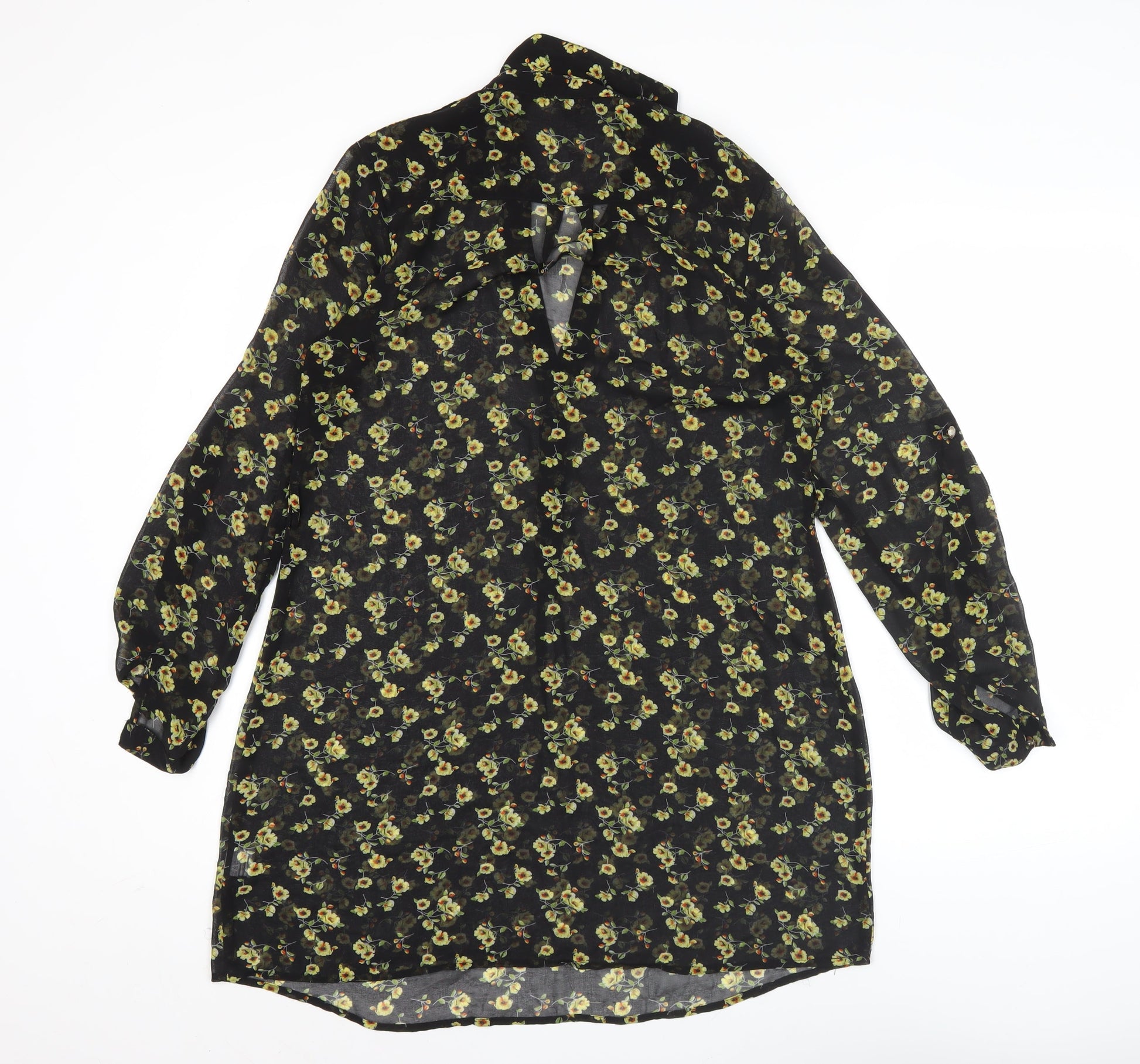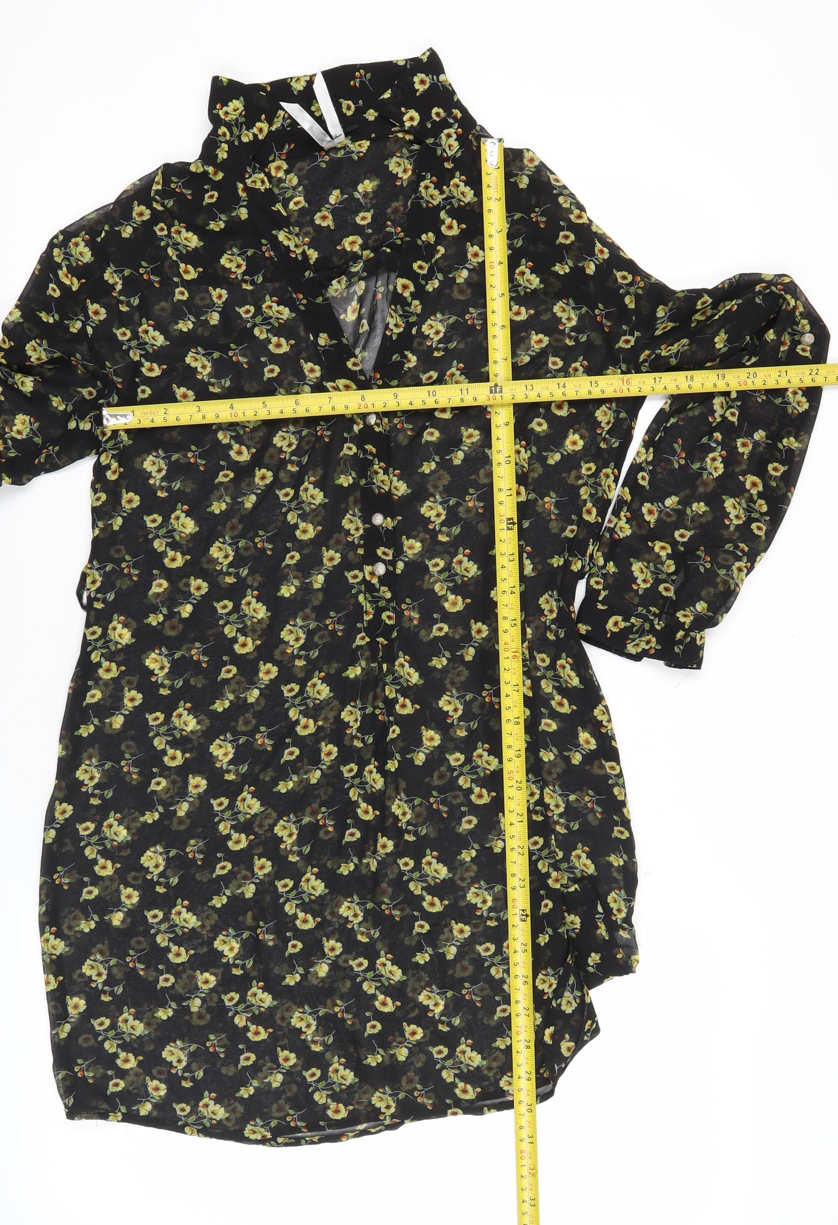 Atmosphere Women’s Black Floral Blouse Tunic Size 8 Long Sleeve