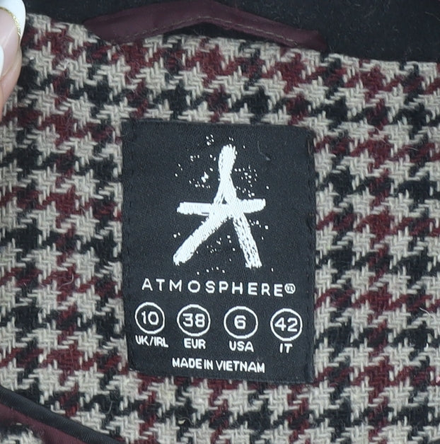 Atmosphere Women's Beige Houndstooth Long Blazer Jacket Size 10