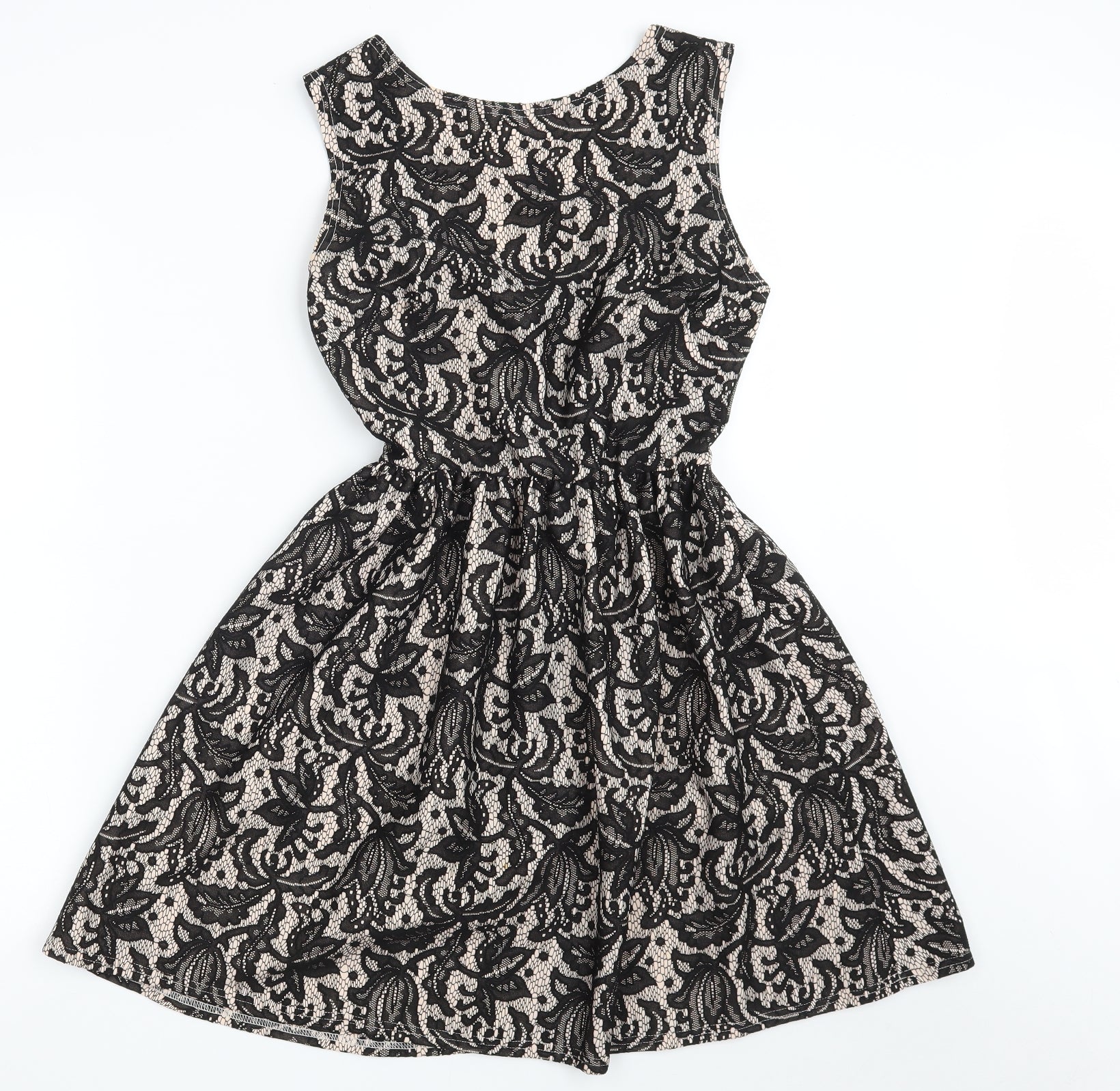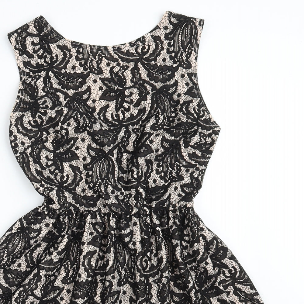 Atmosphere Womens Black Floral Polyester Fit & Flare Size 8 Boat Neck Zip