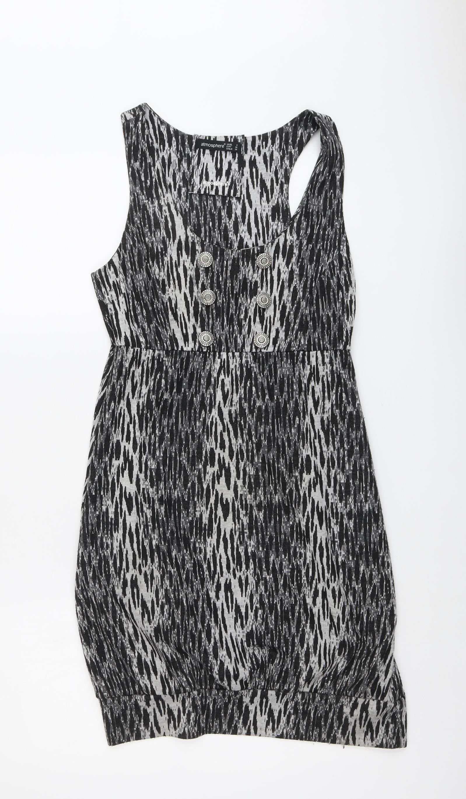 Atmosphere Womens Black Geometric Polyester Shift Size 8 Round Neck Pullover