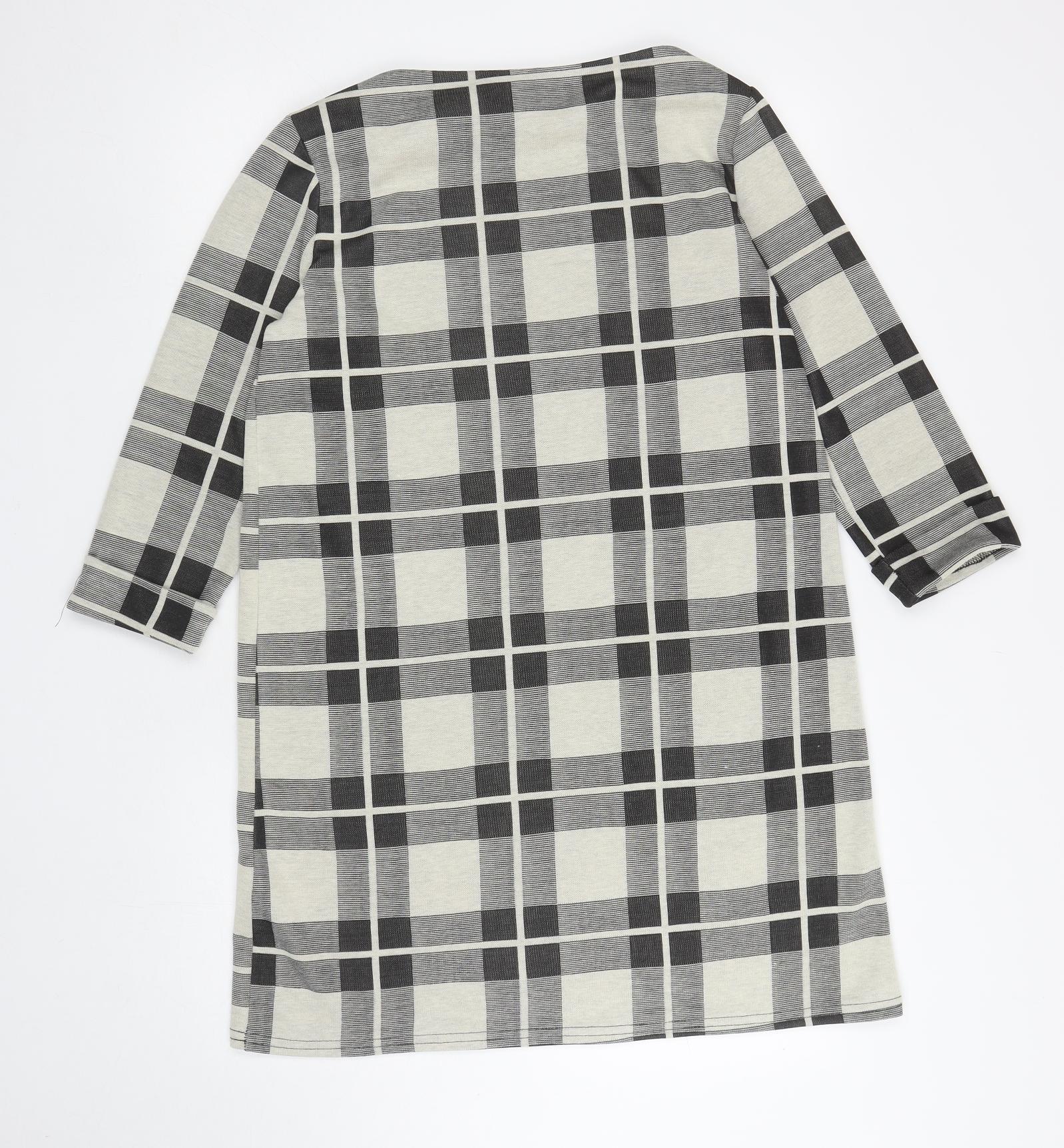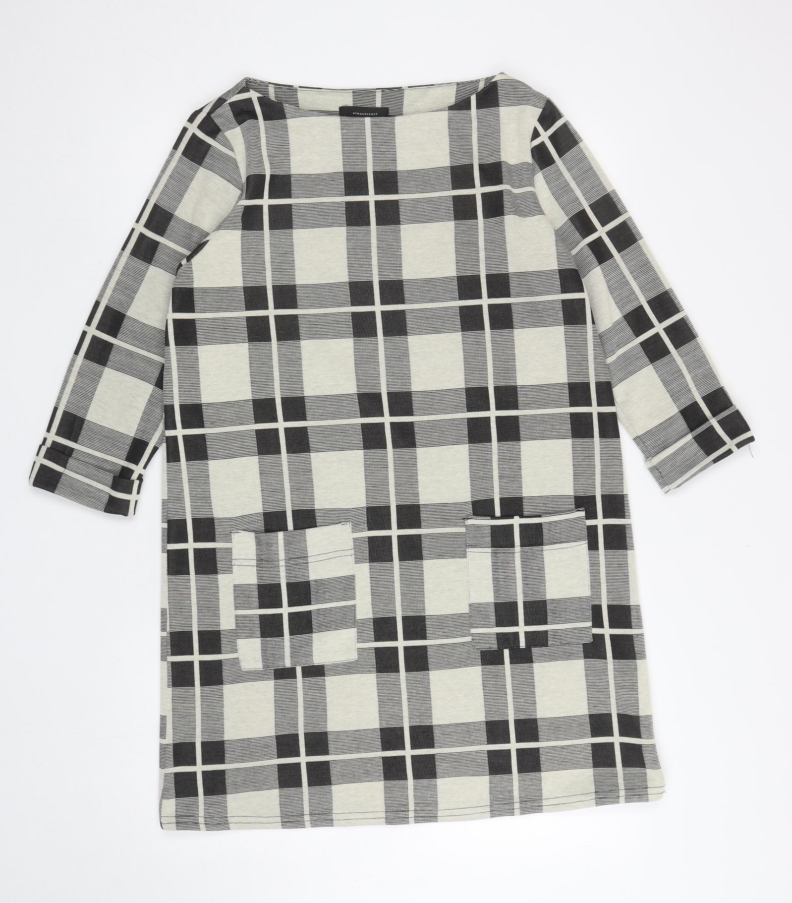 Atmosphere Womens Black Plaid Polyester A-Line Size 14 Boat Neck Pullover