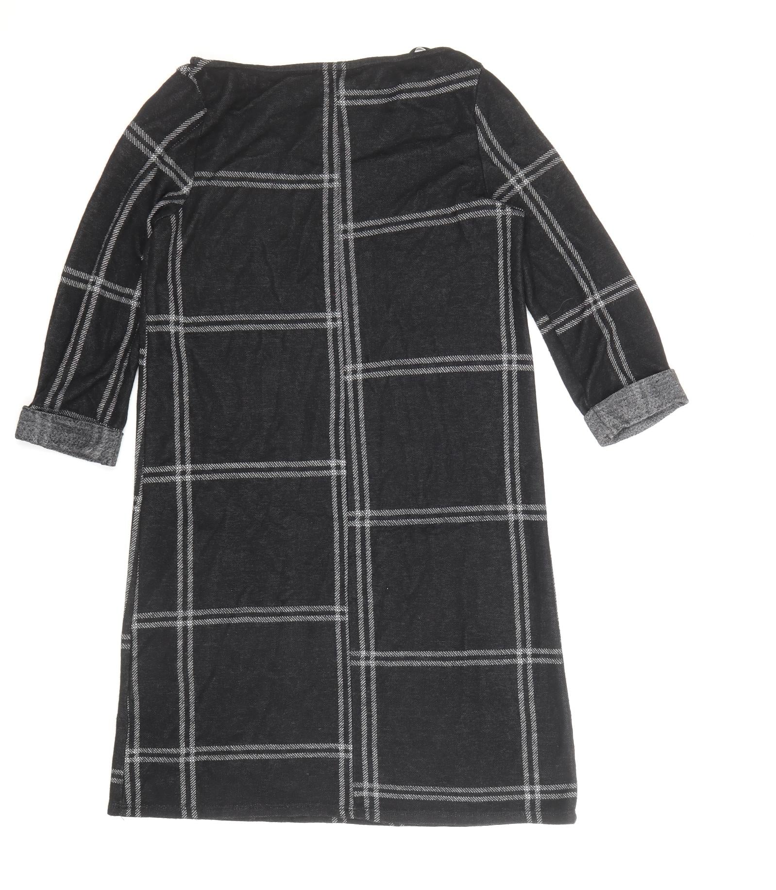 Atmosphere Womens Black Plaid Polyester Shift Size 6 Scoop Neck Pullover