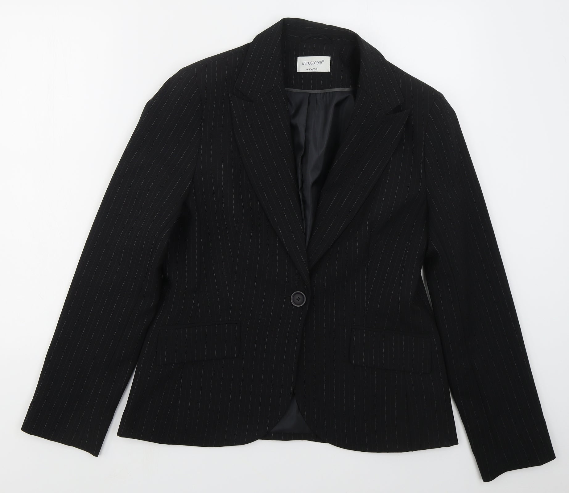 Atmosphere Womens Black Striped Polyester Jacket Suit Jacket Size 14