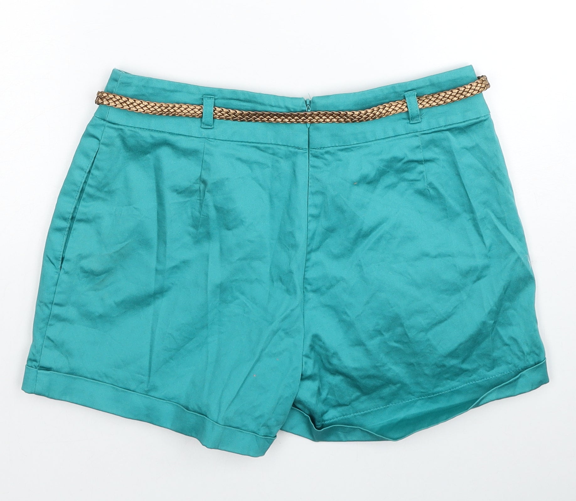 Atmosphere Womens Blue Cotton Mom Shorts Size 8 Regular Zip - Belt included