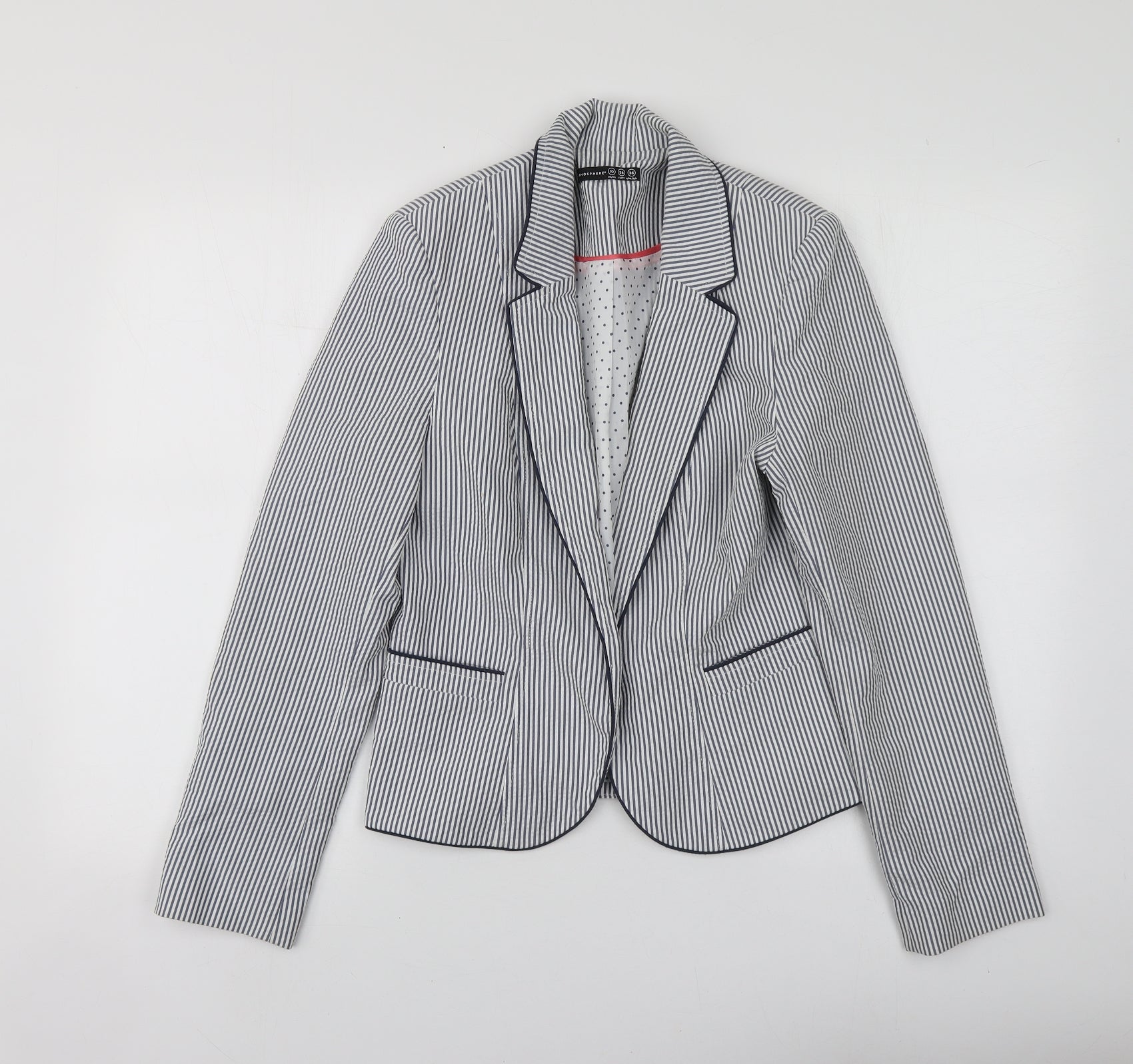 Atmosphere Womens Blue Striped Polyacrylate Fibre Jacket Suit Jacket Size 10