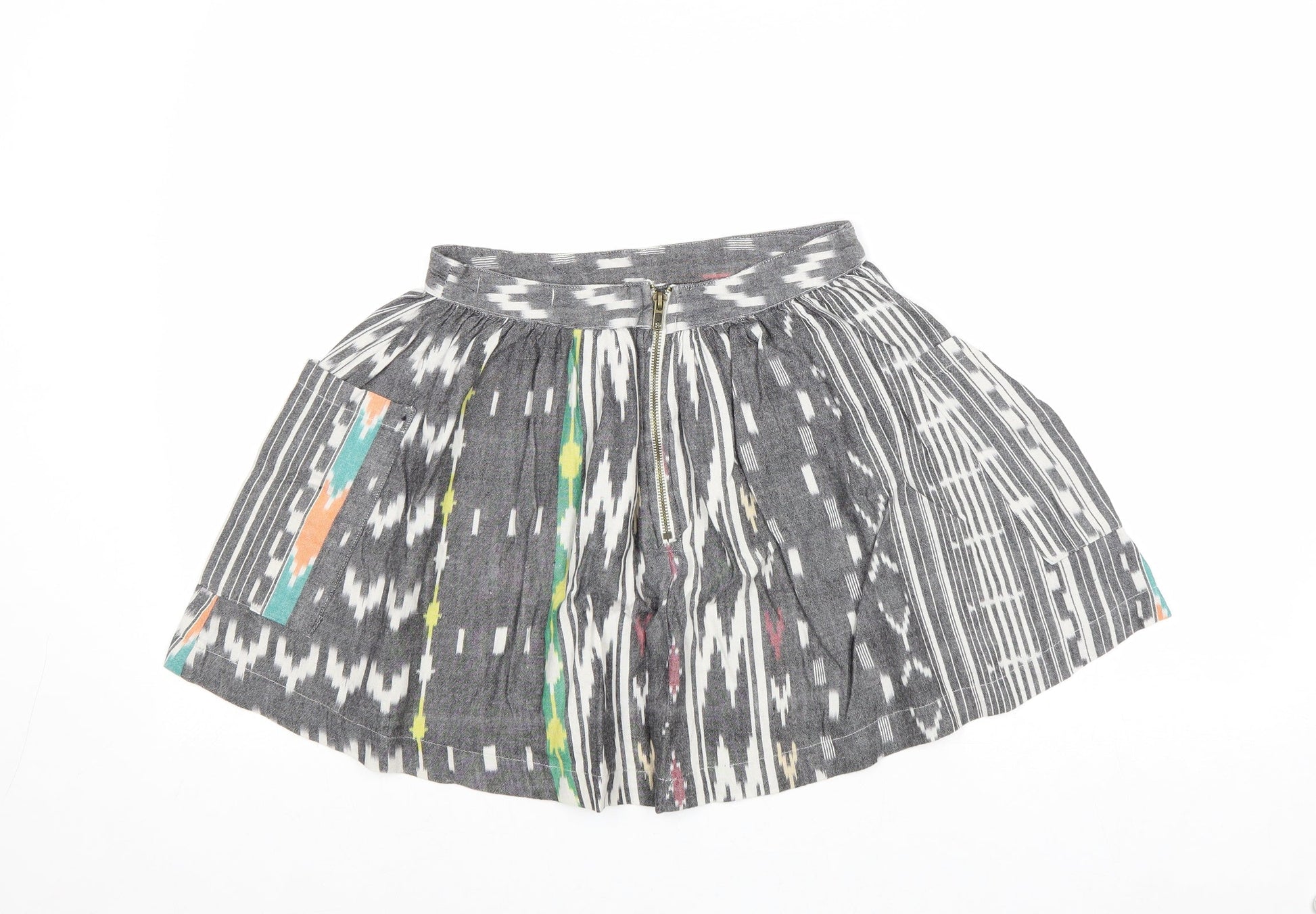 Atmosphere Womens Grey Geometric Cotton Skater Skirt Size 8 Zip