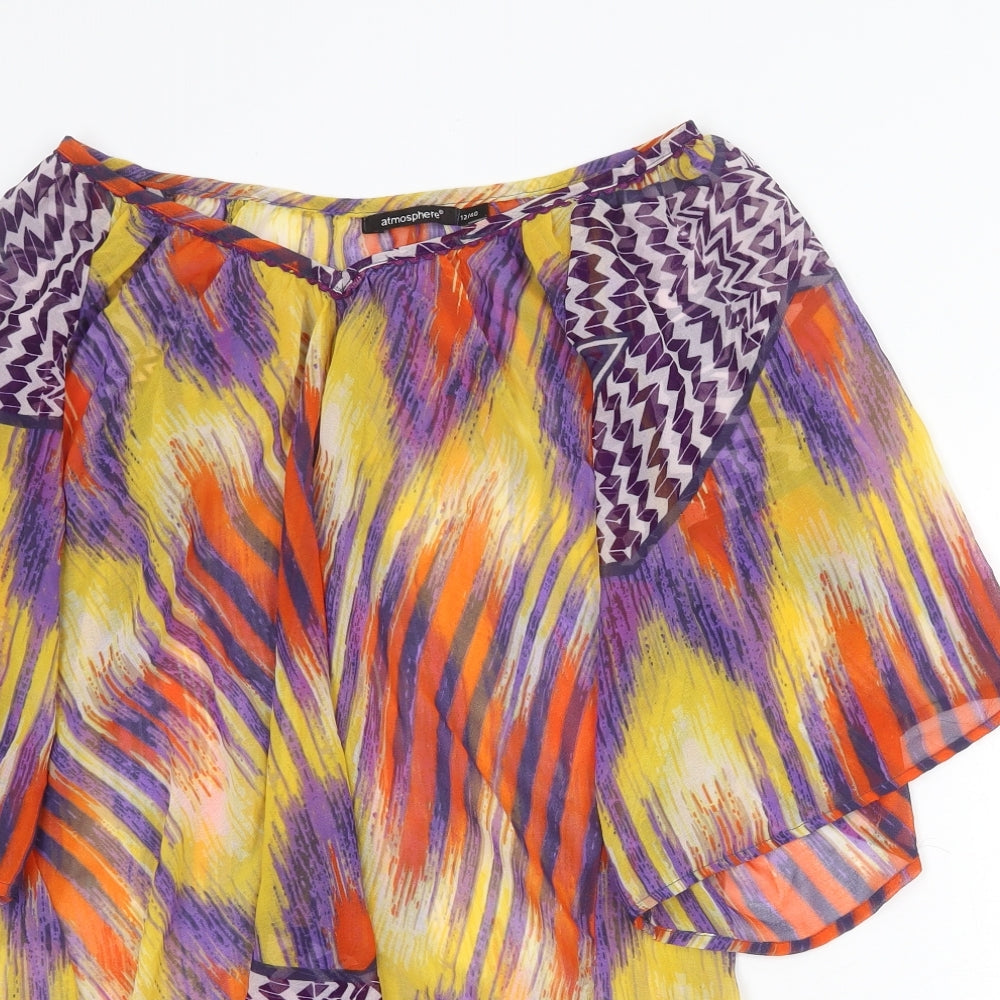 Atmosphere Womens Multicoloured Geometric Polyester A-Line Size 12 V-Neck Pullover