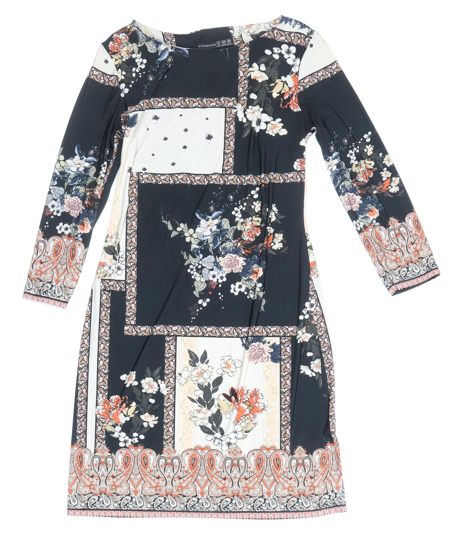 Atmosphere Womens Multicoloured Geometric Polyester A-Line Size 6 Boat Neck Pullover