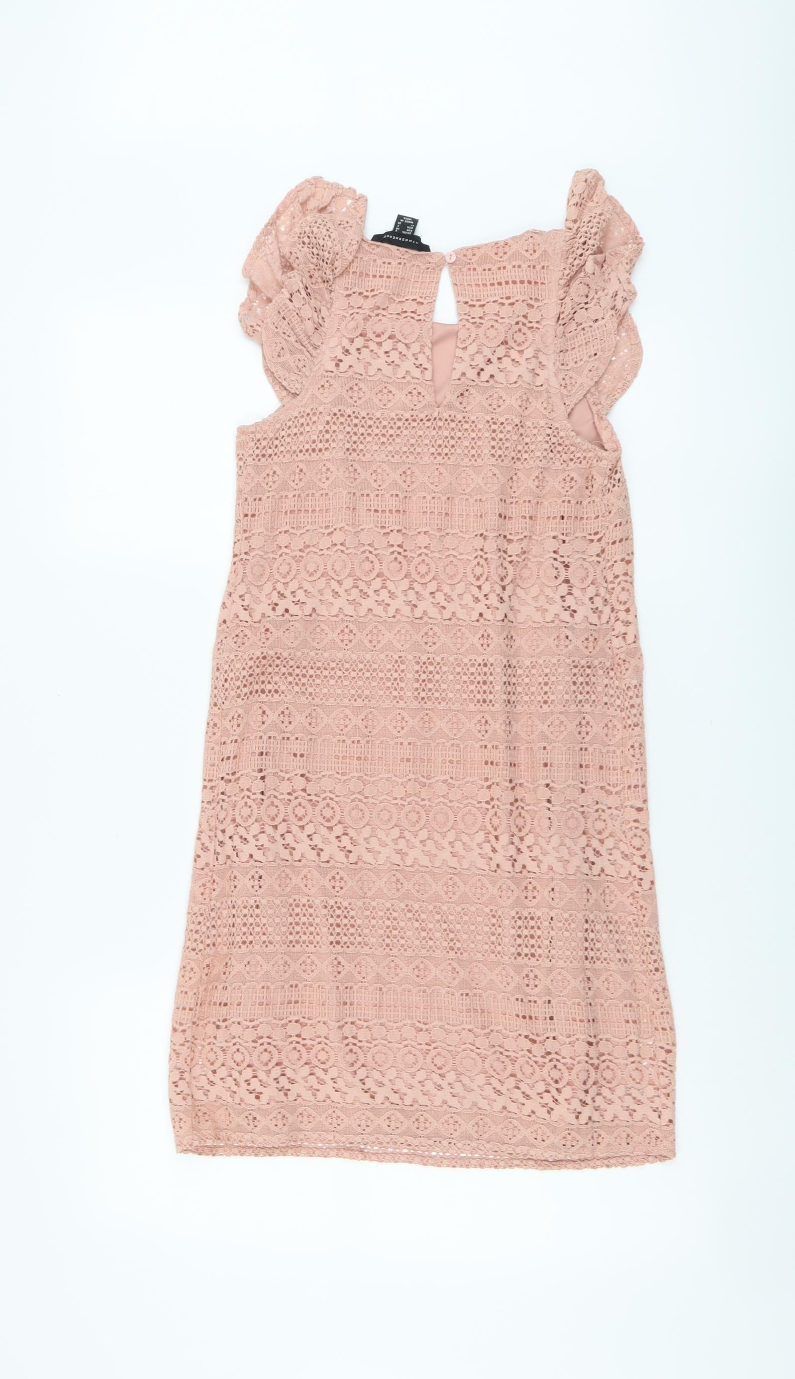 Atmosphere Womens Pink Geometric Cotton A-Line Size 6 Round Neck Button