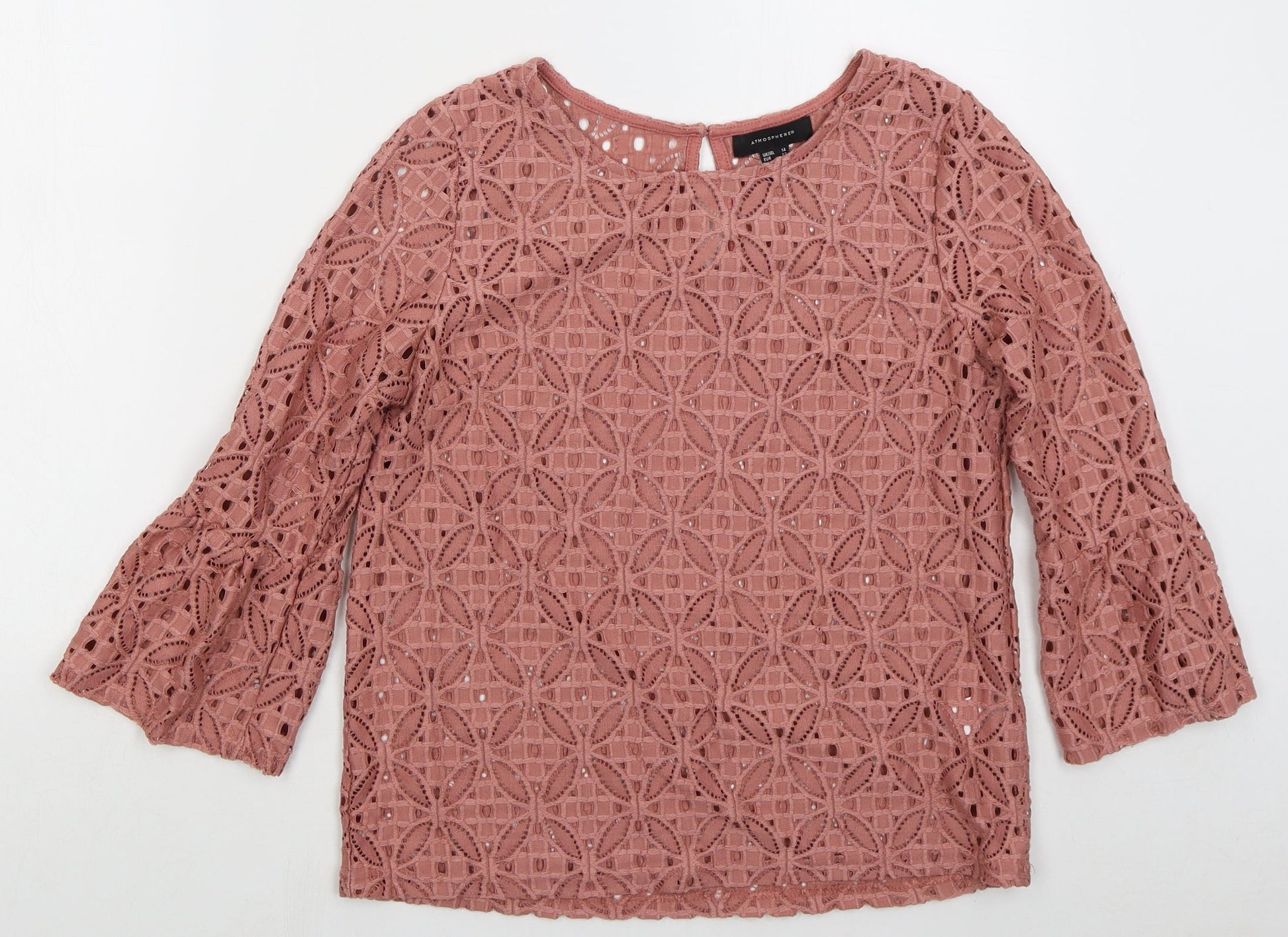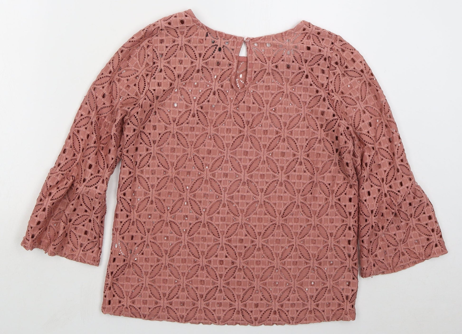 Atmosphere Womens Pink Geometric Nylon Basic Blouse Size 14 Boat Neck