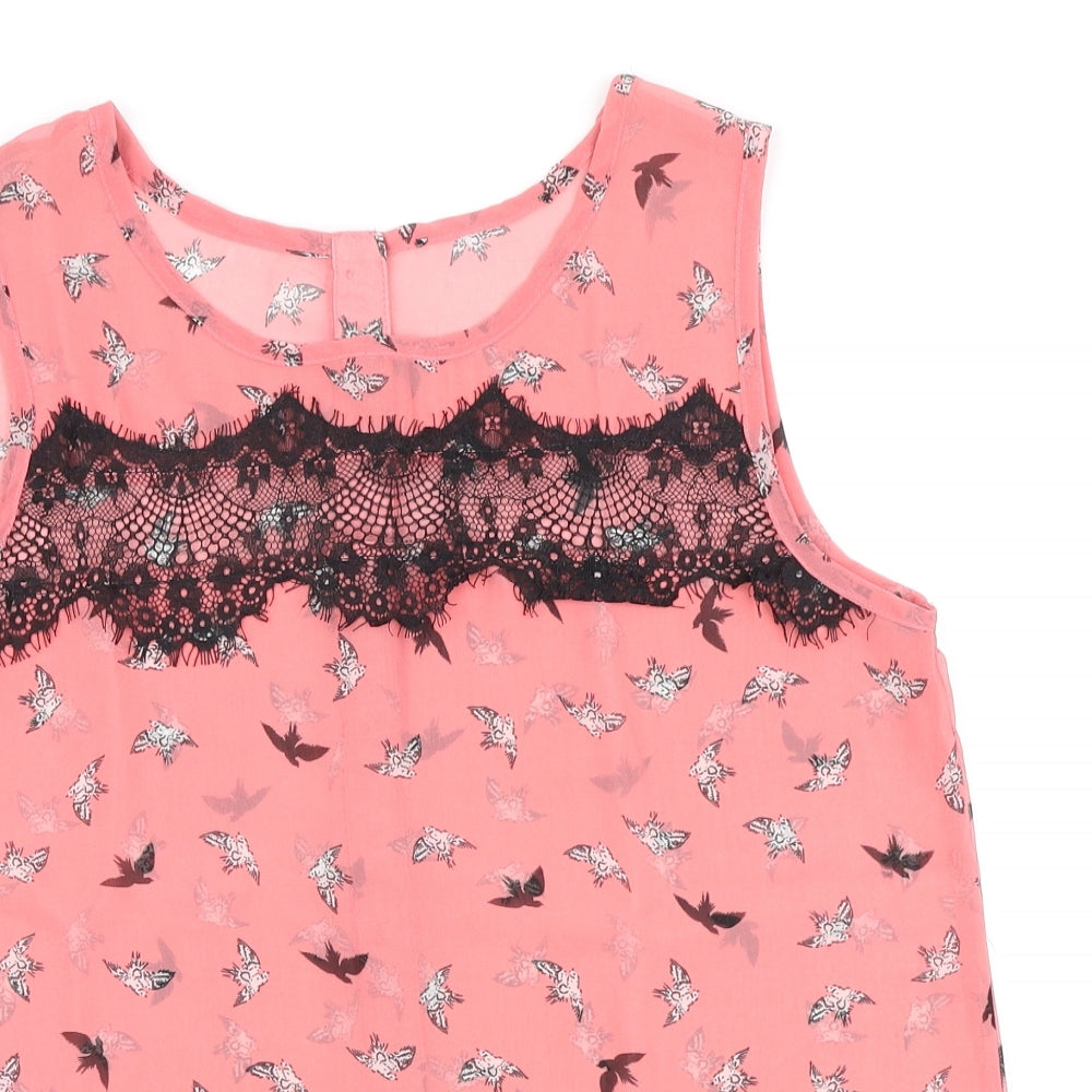 Atmosphere Womens Pink Geometric Polyester Basic Blouse Size 12 Round Neck - Bird print & lace detail