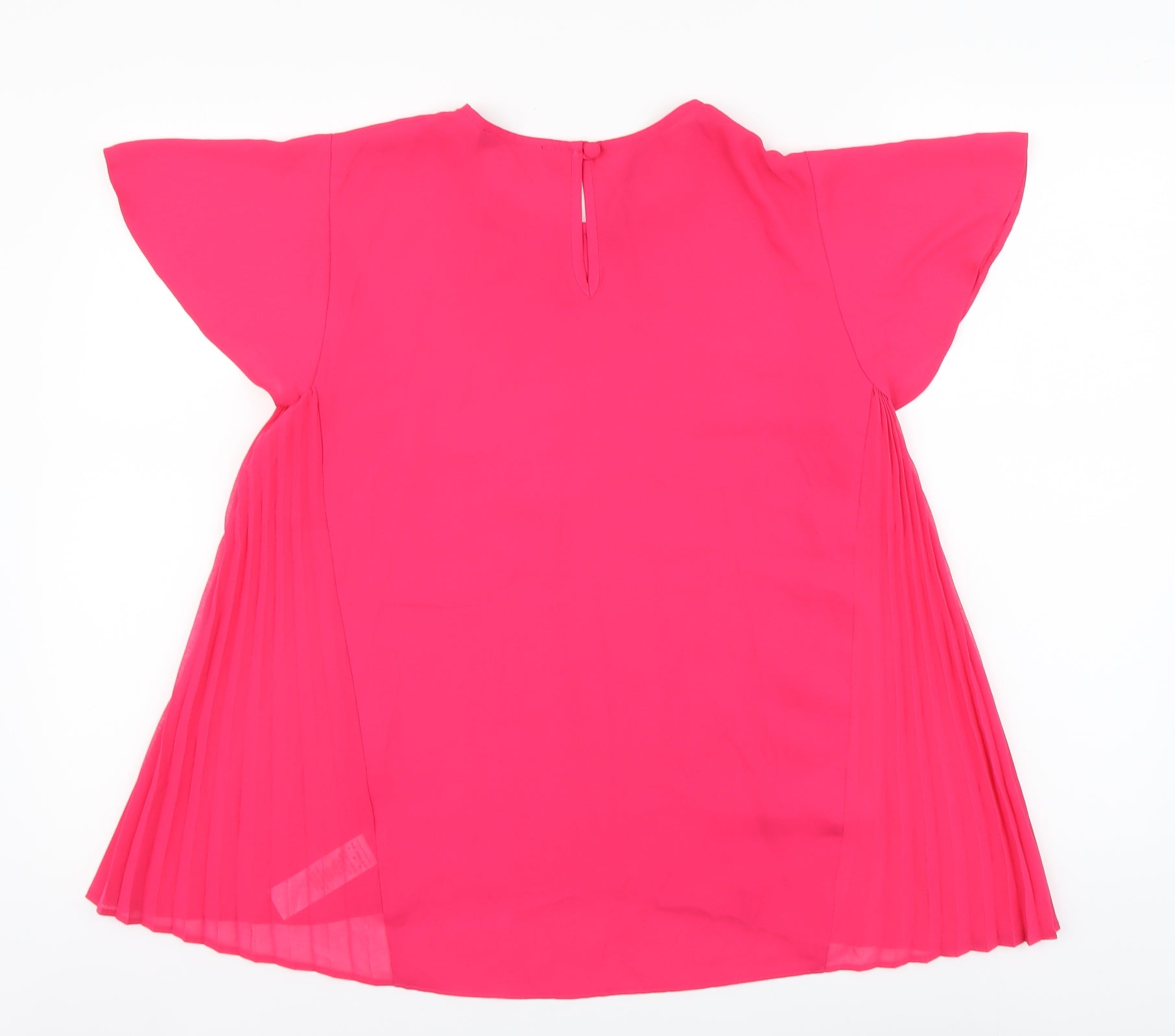 Atmosphere Womens Pink Polyester Basic Blouse Size 8 Round Neck