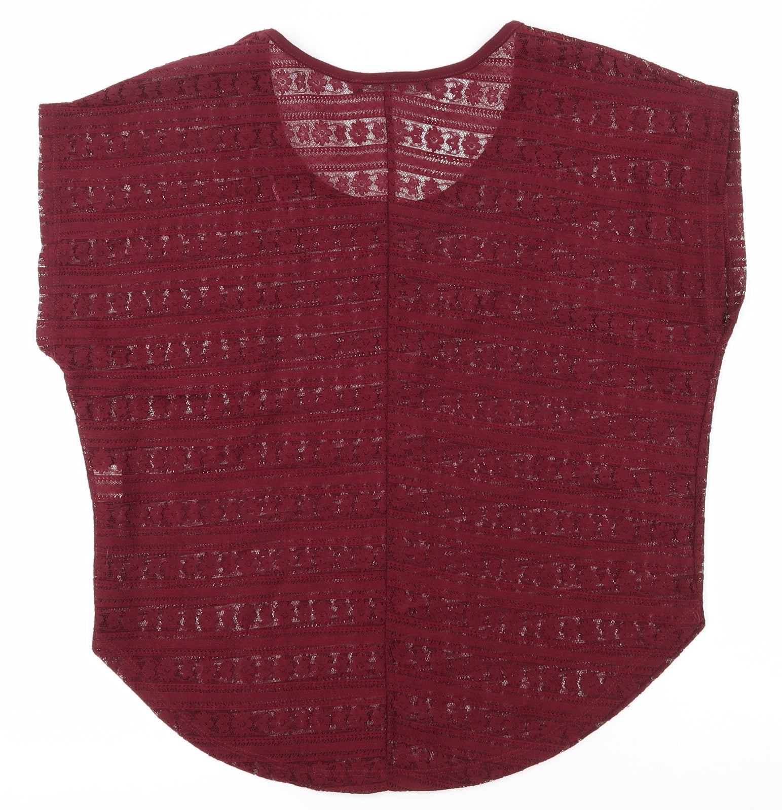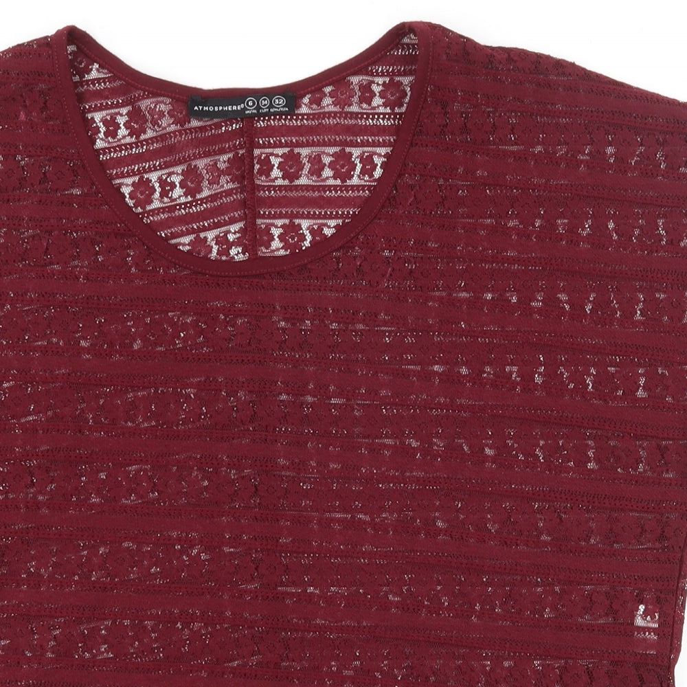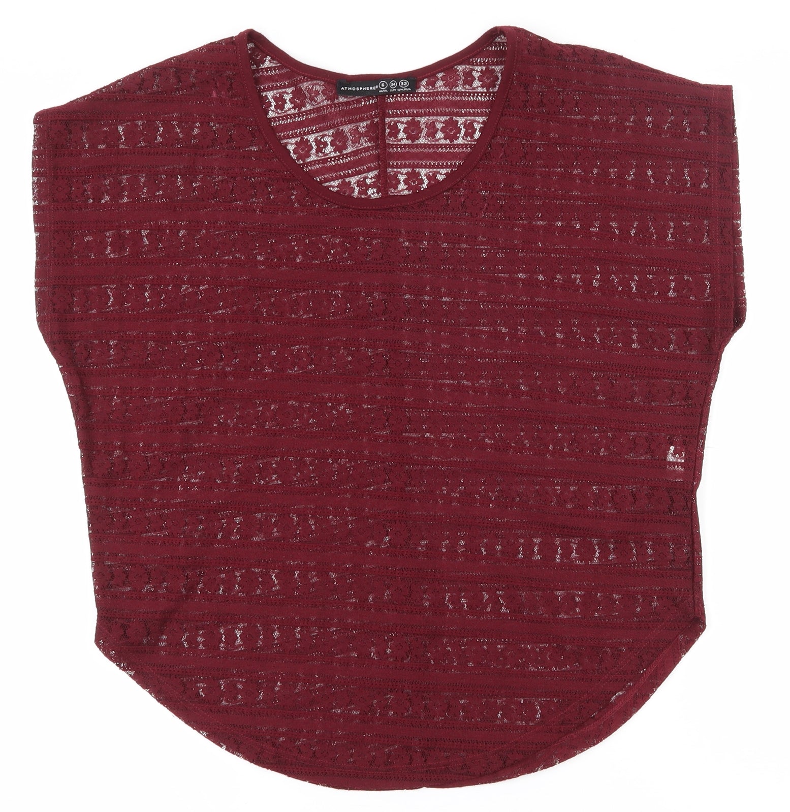 Atmosphere Womens Red Floral Polyester Basic T-Shirt Size 6 Scoop Neck