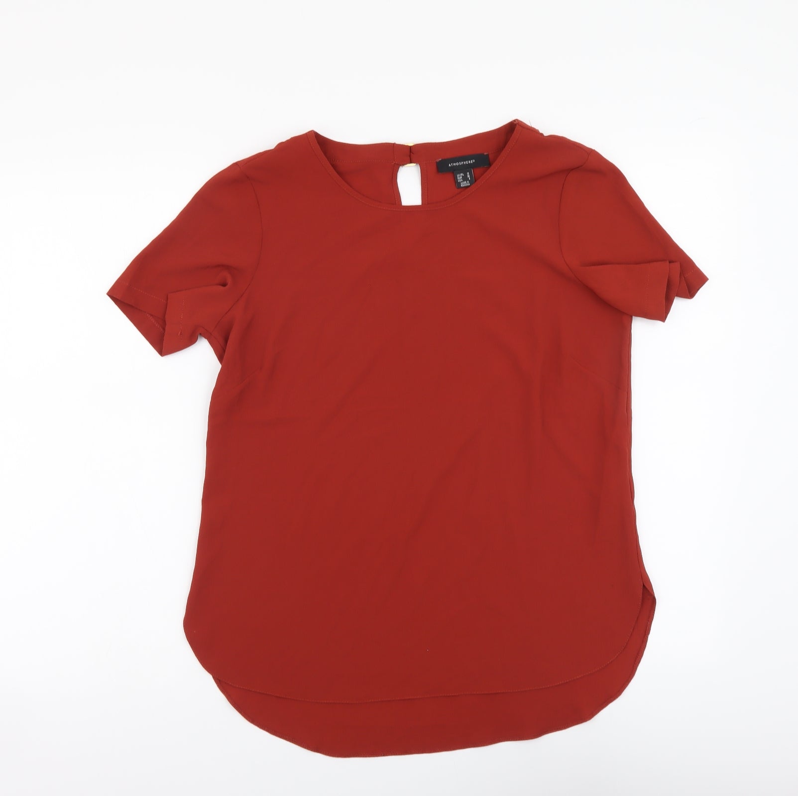 Atmosphere Womens Red Polyester Basic Blouse Size 10 Round Neck