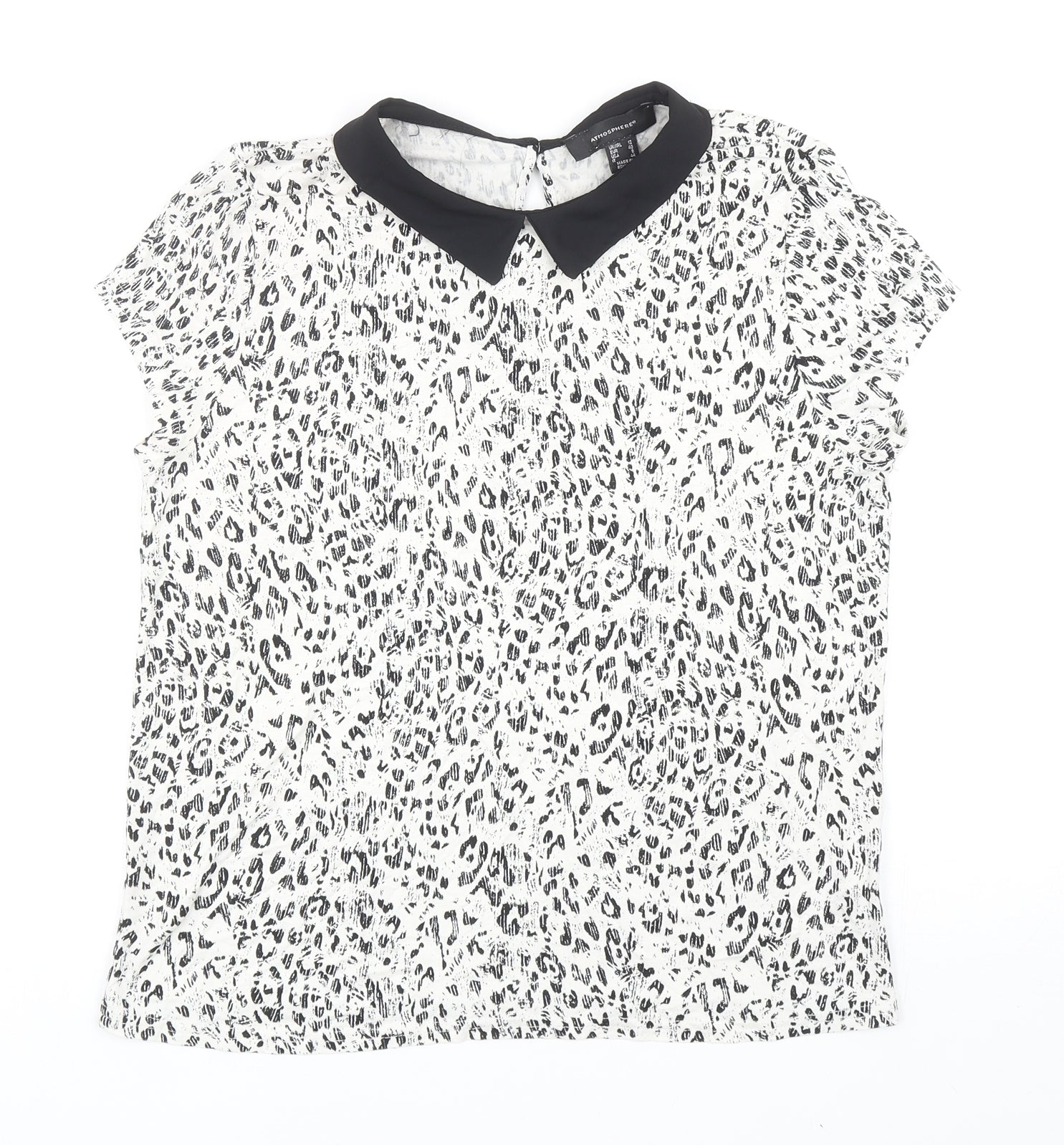 Atmosphere Womens White Animal Print Viscose Basic Blouse Size 12 Collared - Leopard Print