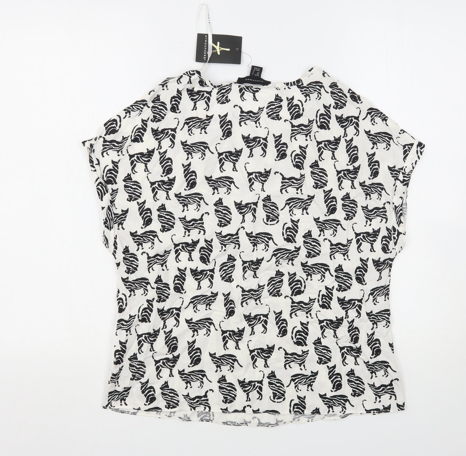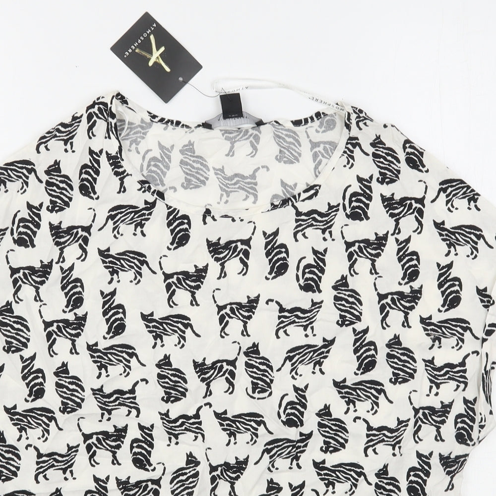 Atmosphere Womens White Animal Print Viscose Basic Blouse Size 8 Round Neck