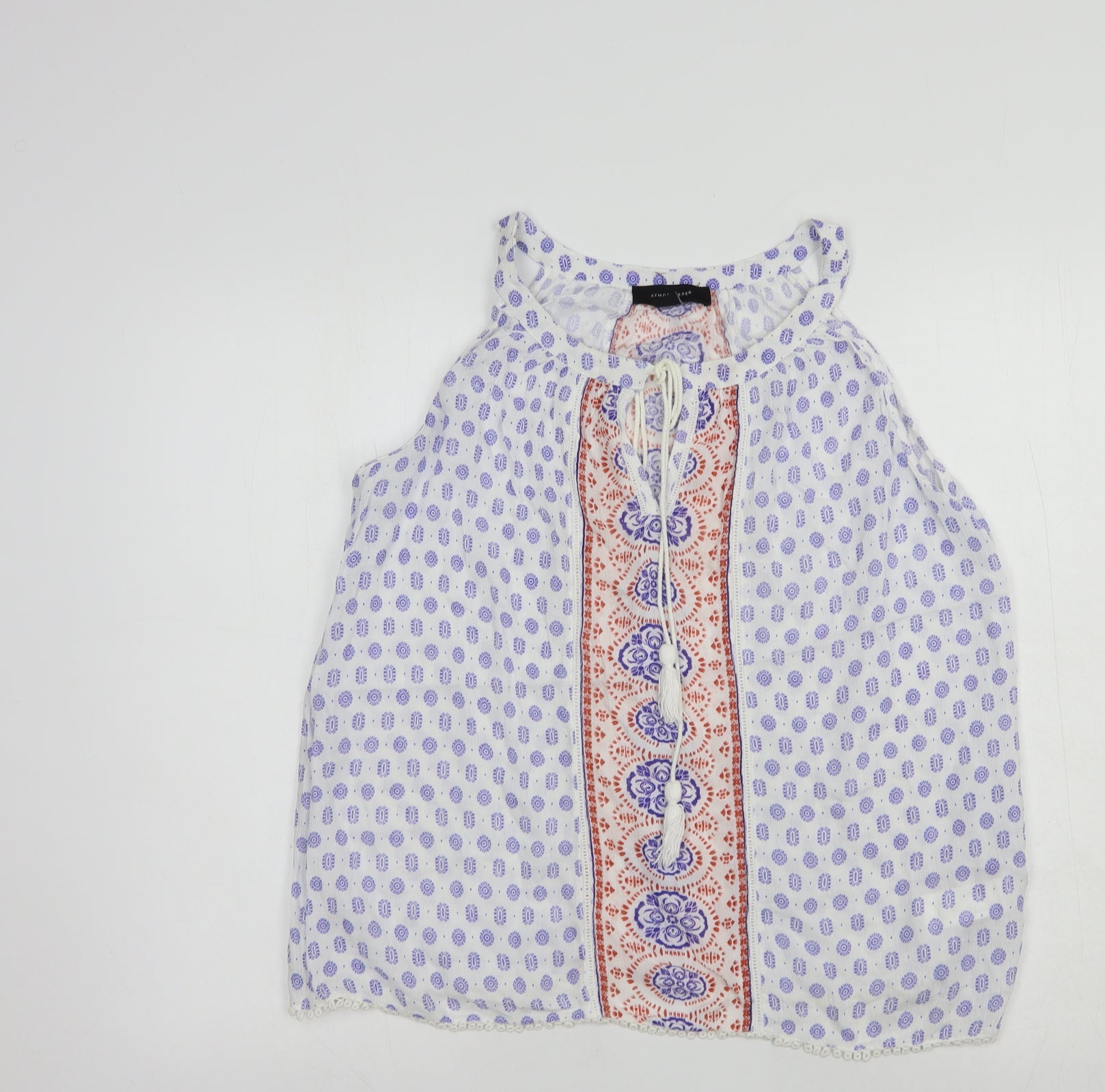 Atmosphere Womens White Geometric Viscose Basic Blouse Size 12 Round Neck