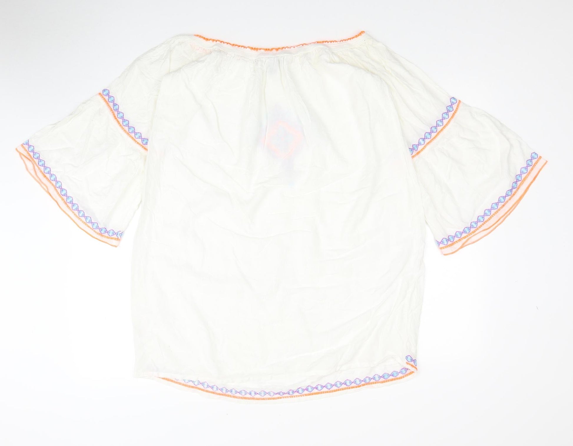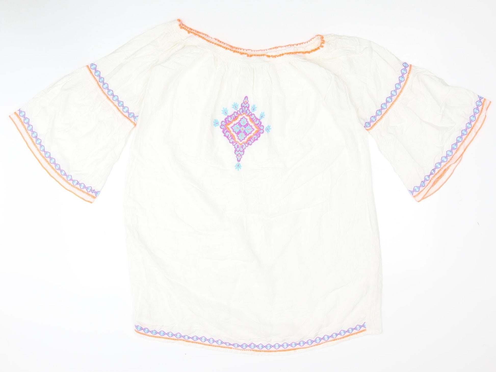 Atmosphere Womens White Geometric Viscose Kaftan Size L Boat Neck Pullover