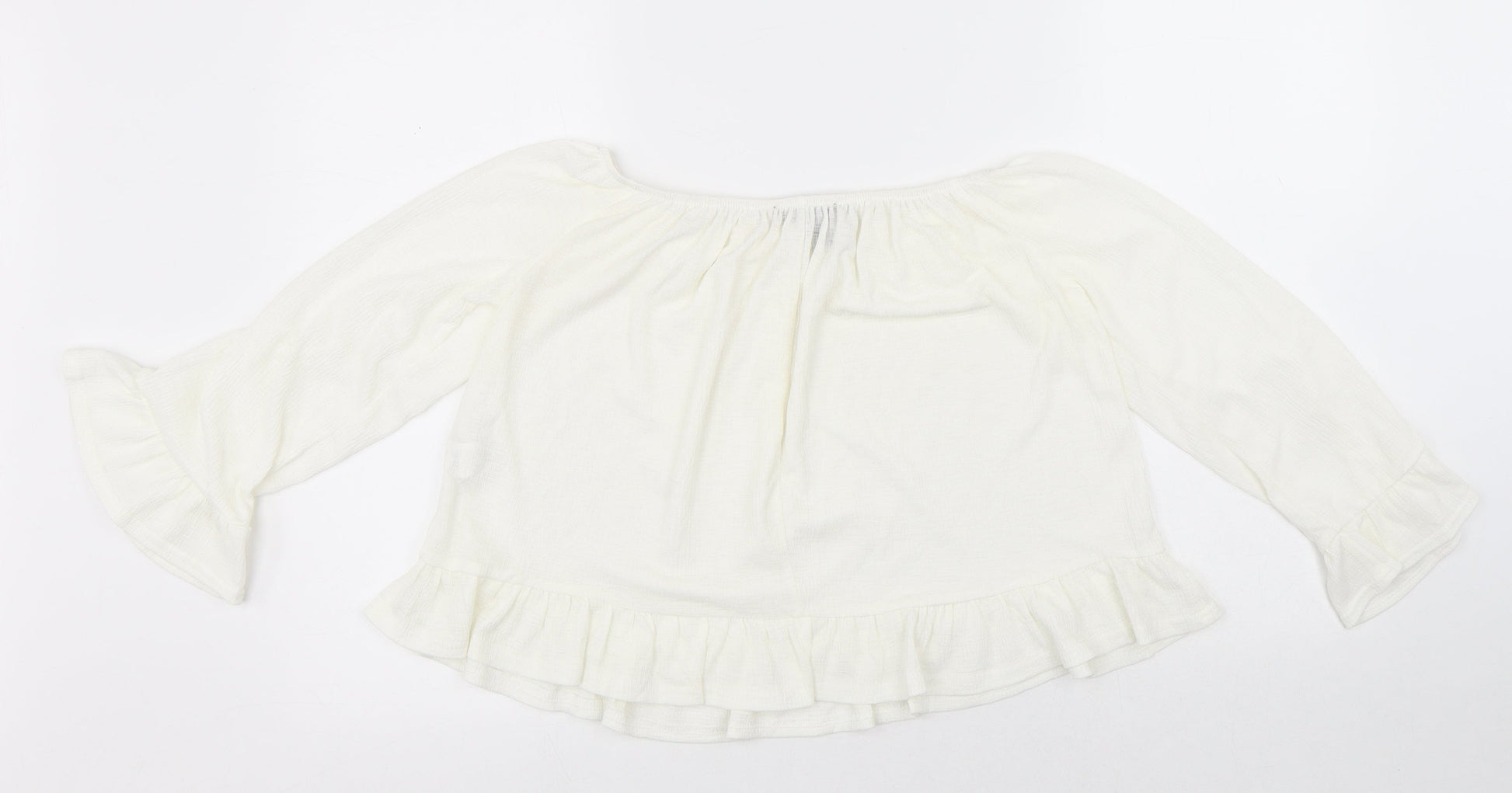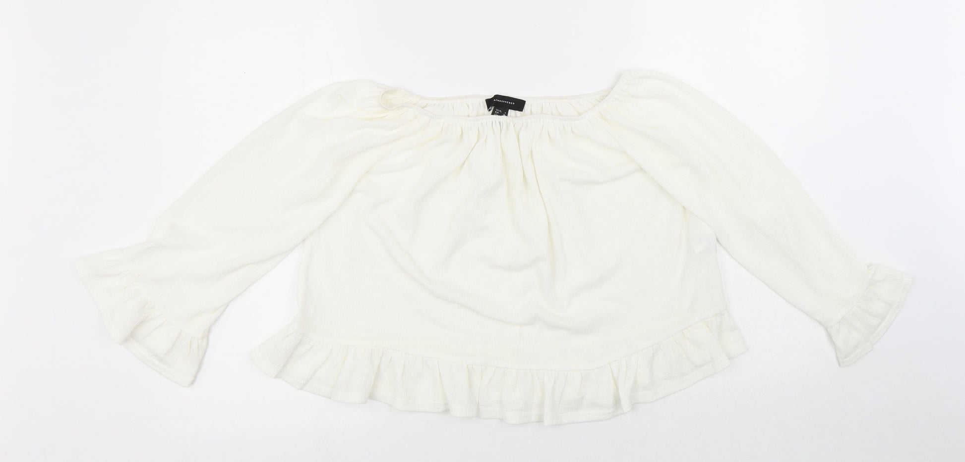 Atmosphere Womens White Polyester Cropped Blouse Size 8 Round Neck