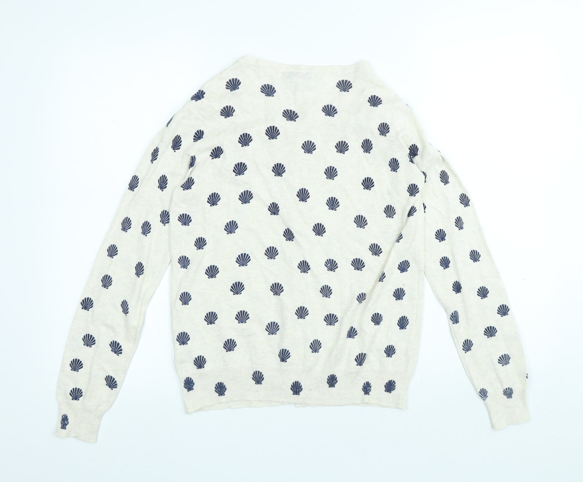 Atmosphere Womens White Round Neck Geometric Cotton Cardigan Jumper Size 10 - Shell pattern