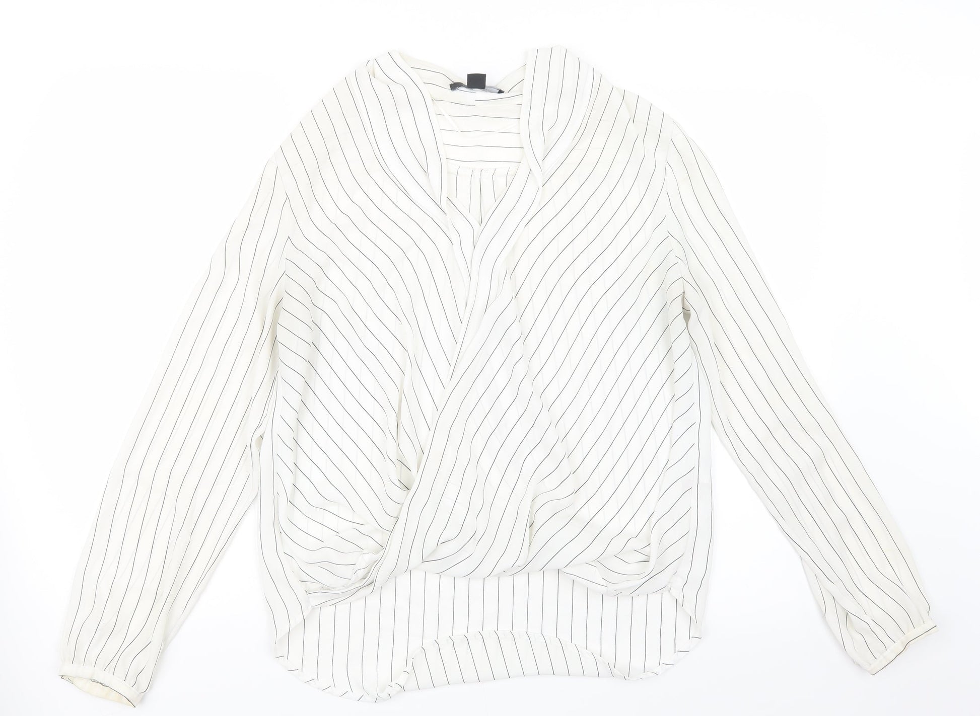Atmosphere Womens White Striped Basic Blouse Size 14