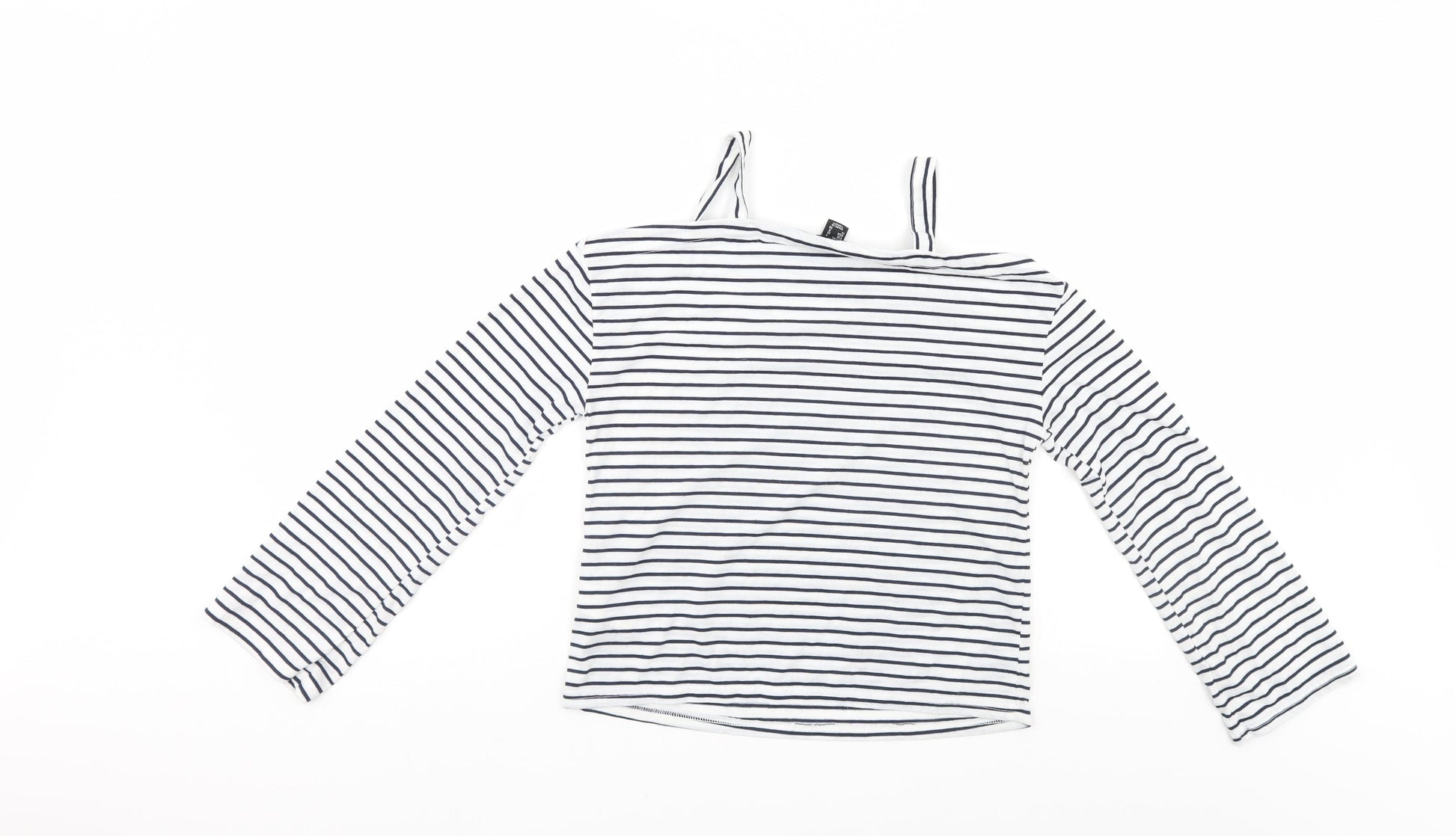 Atmosphere Womens White Striped Basic Blouse Size 4