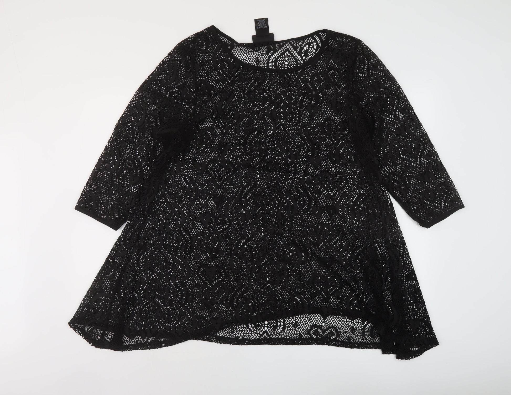Attitudes Womens Black Polyester Basic Blouse Size L Round Neck