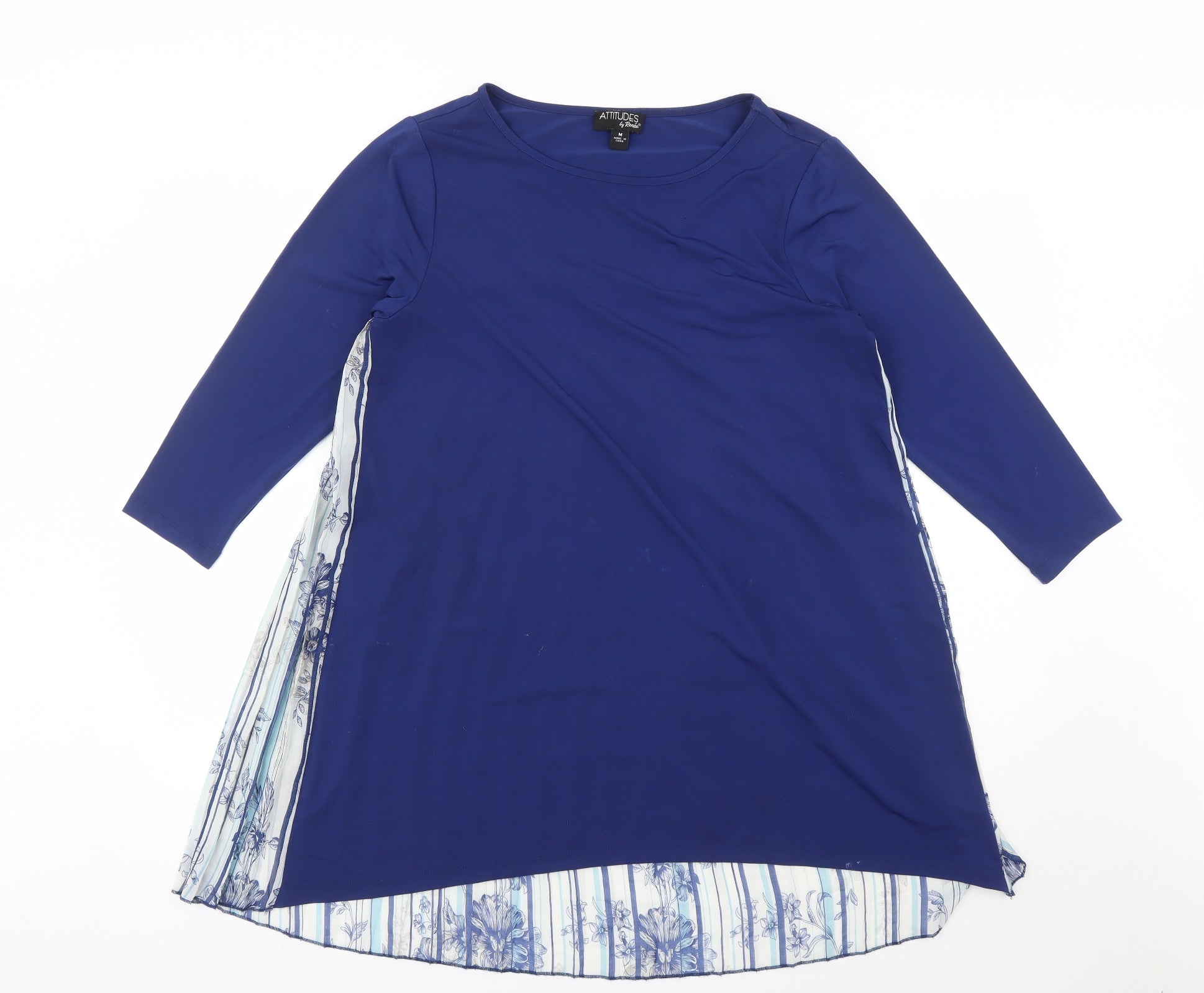 Attitudes Womens Blue Floral Polyester Basic Blouse Size M Round Neck - Pleated Back