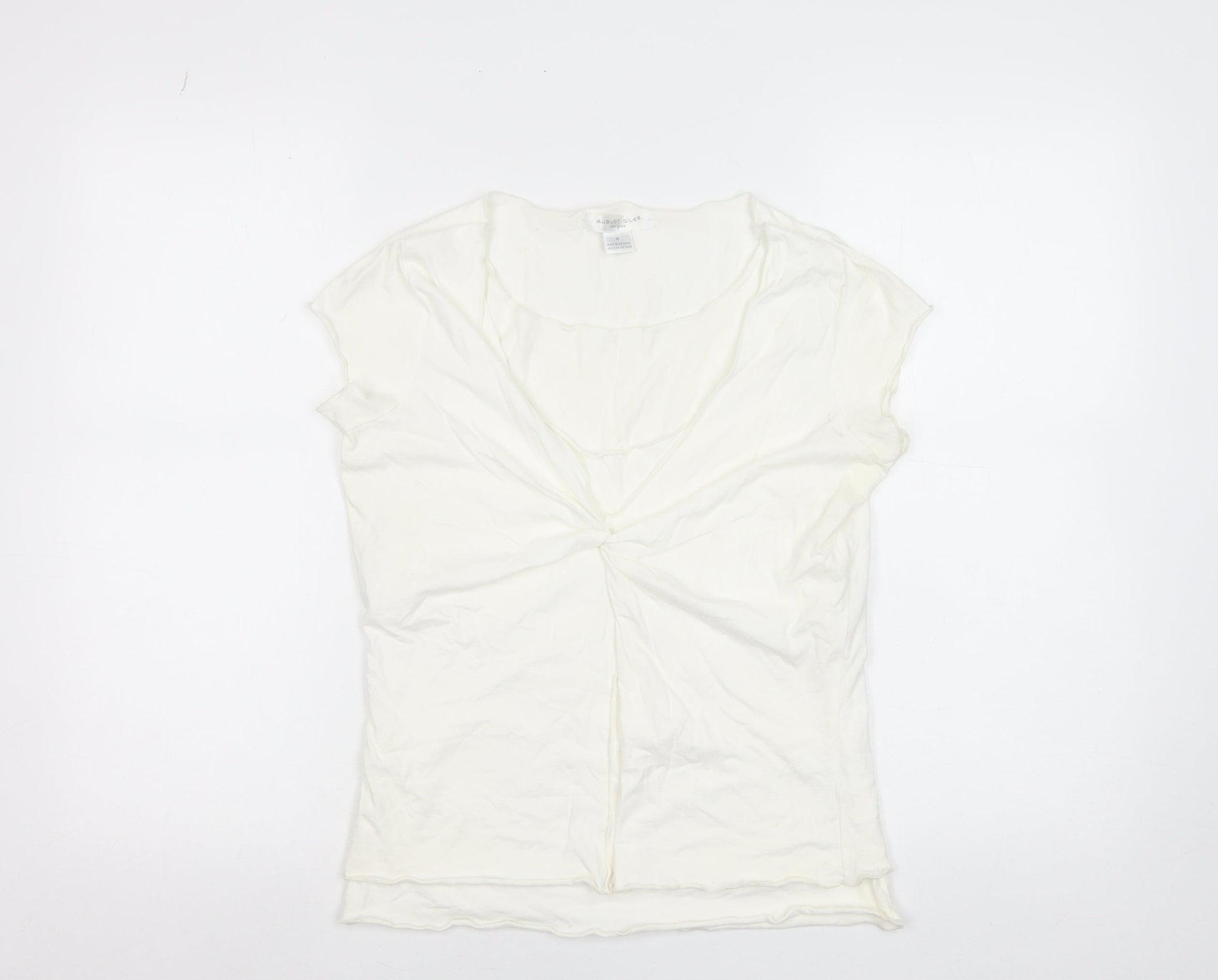 August Silk Womens Ivory Cotton V-Neck Cap Sleeve T-Shirt M