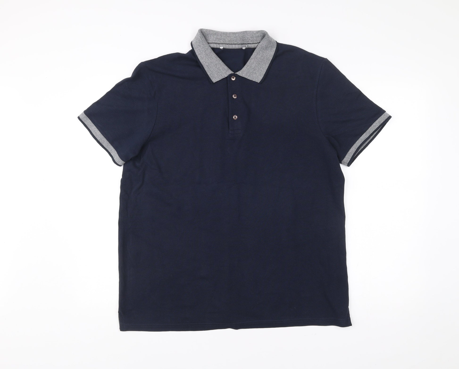Austin Reed Men's Blue Cotton Polo Shirt L Short Sleeve
