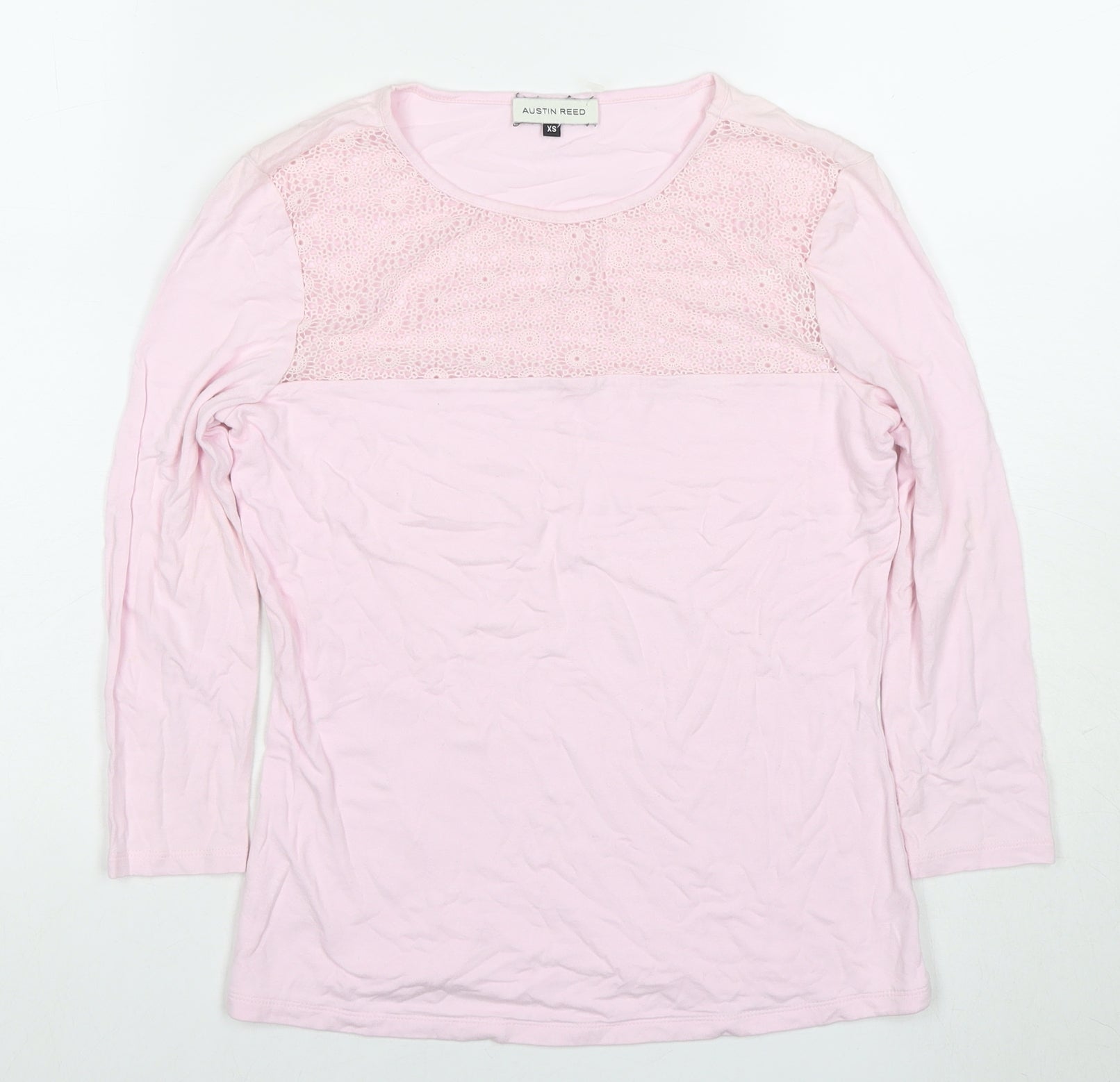 Austin Reed Pink Long Sleeve Women's Crochet Detail Top XS
