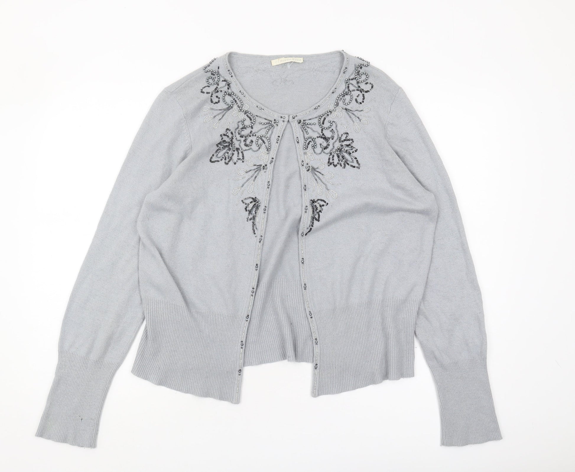 Austin Reed Women's Grey Cardigan, R, Embroidered Knit