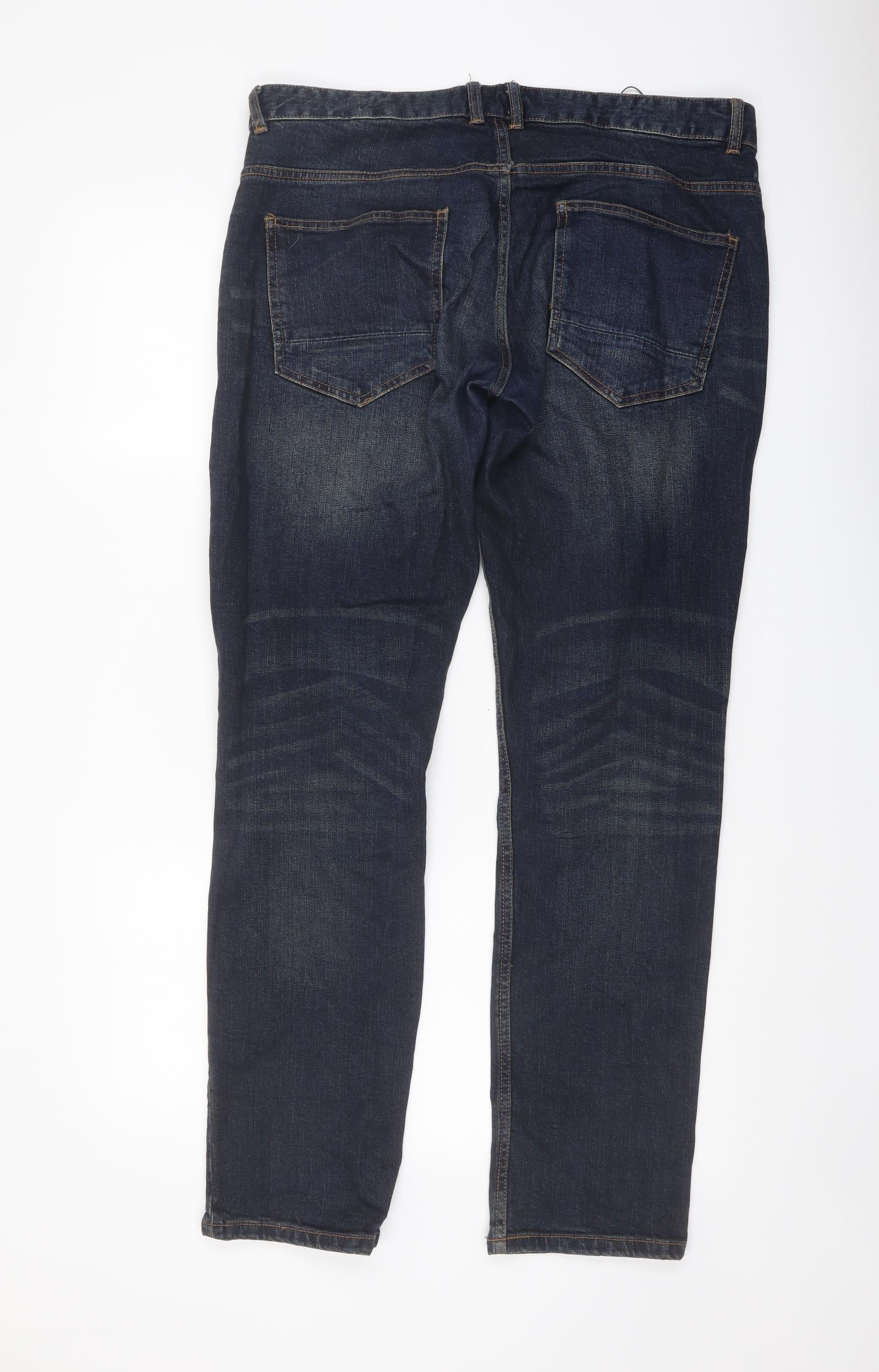 Authentic Casual Wear Mens Blue Cotton Straight Jeans Size 32 in L32 in Slim Button