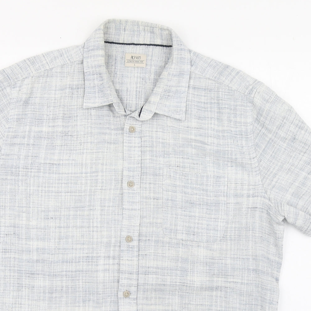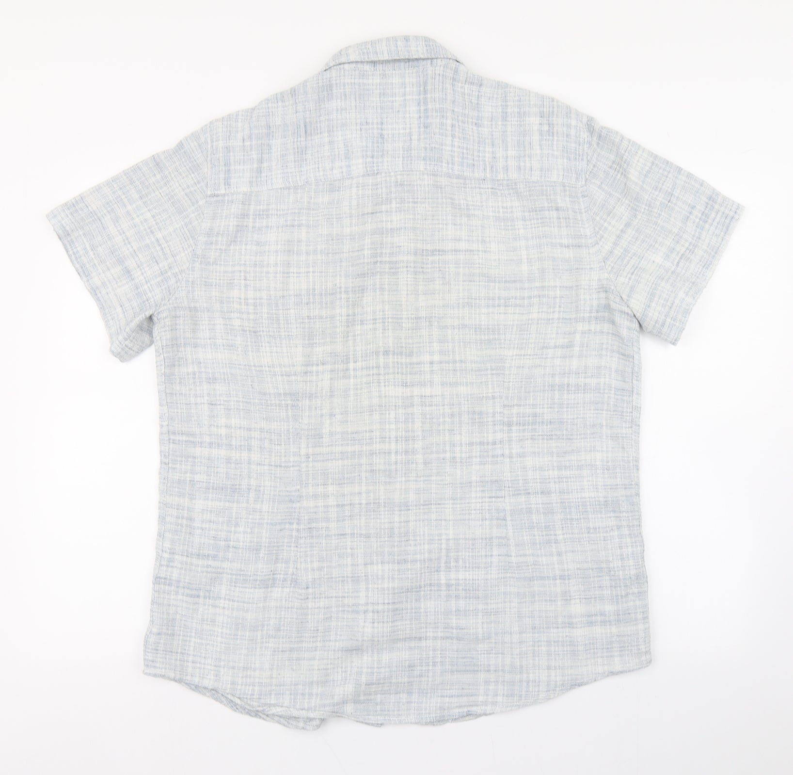 Authentic Casual Wear Mens Blue Polyester Button-Up Size L Collared Button